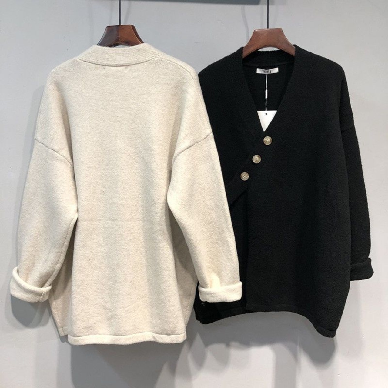 Nomikuma秋冬イレギュラーシングルブレストセーターカーディガンコート2022無地長袖Vネックニットアウタージャケット ロング オータム 秋物 ウィンター 冬物 ソリッドカラー kor74927217136