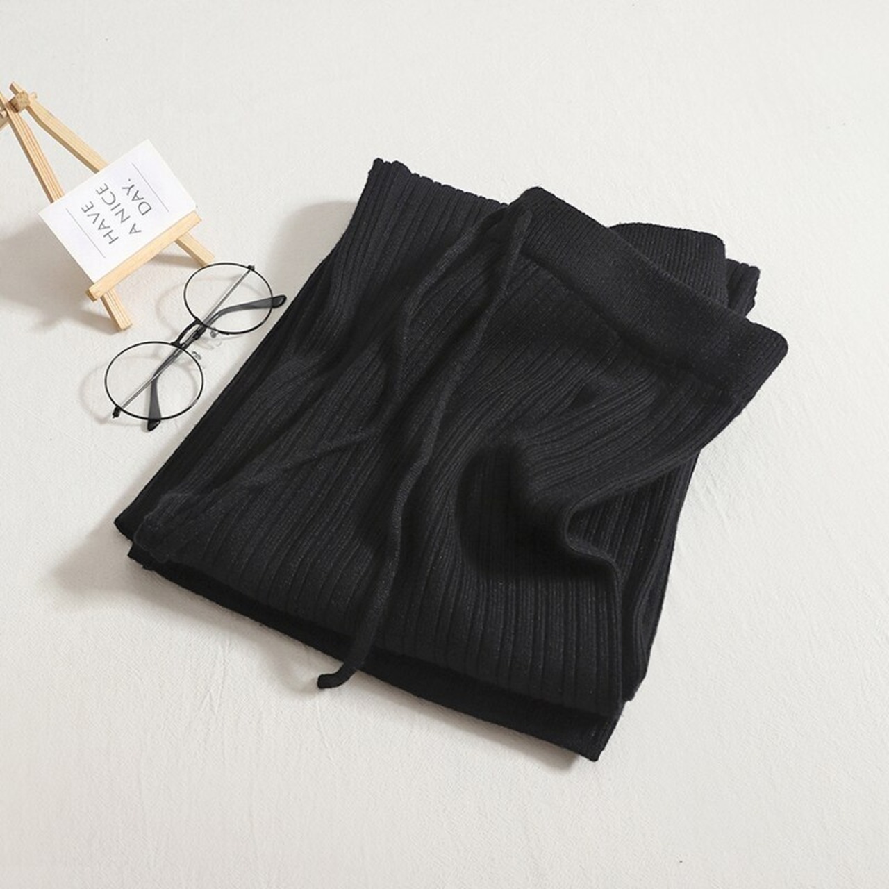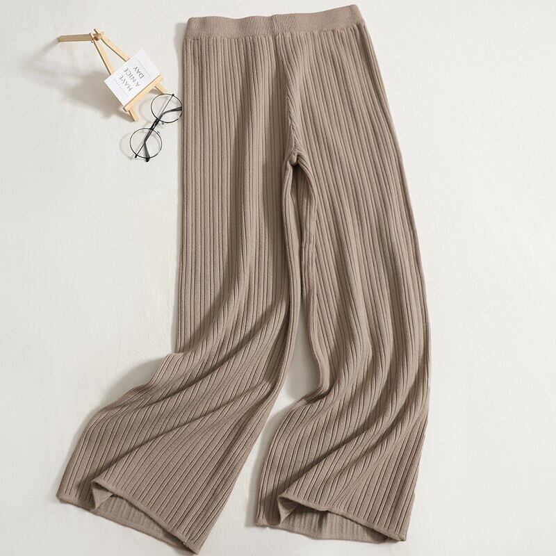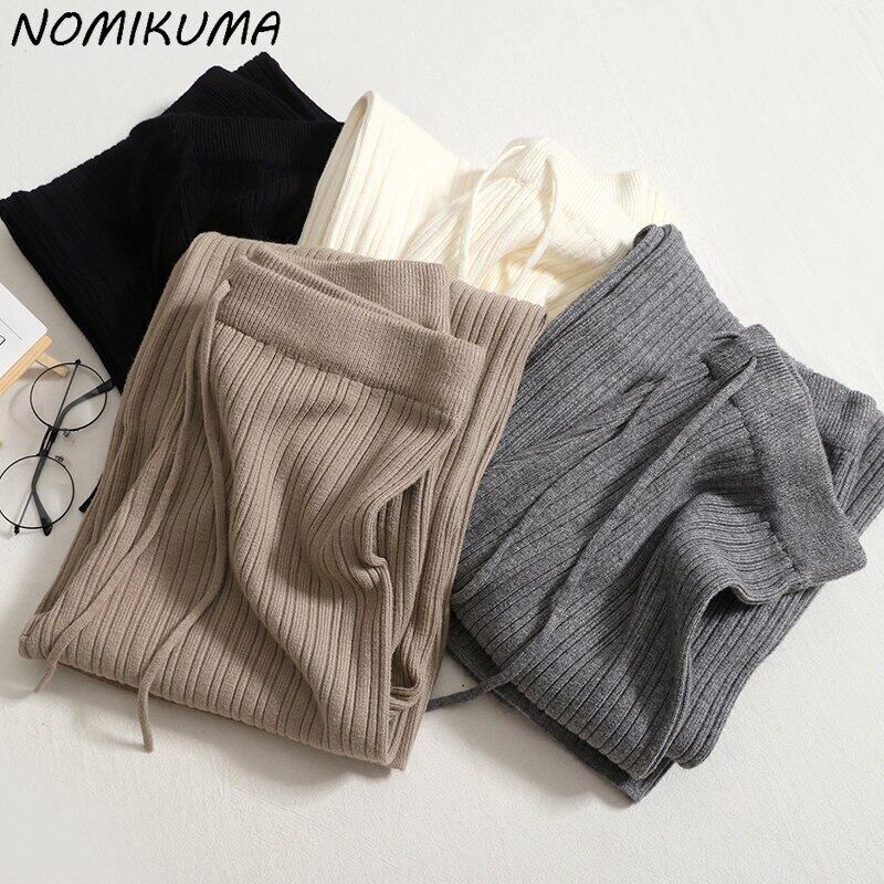 Nomikuma ソリッドレースアップウエストニットロングパンツ女性 2022 秋冬ズボン因果セーターワイドレッグパンツ オータム 秋物 ウィンター 冬物 ワイドパンツ ソリッドカラー kor35486156276