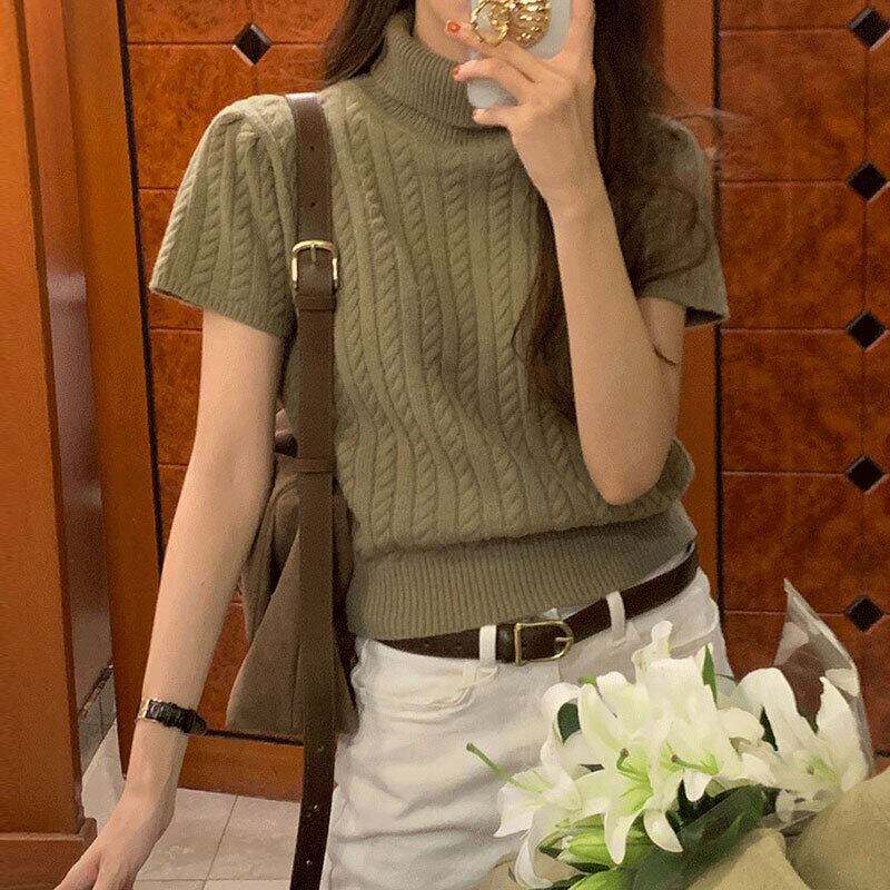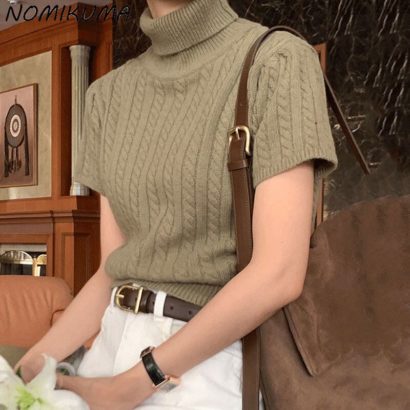 Nomikuma タートルネックプルオーバーツイストショートニットトップススリム女性セーター秋冬底入れジャンパー オータム 秋物 ウィンター 冬物 kor63432257140