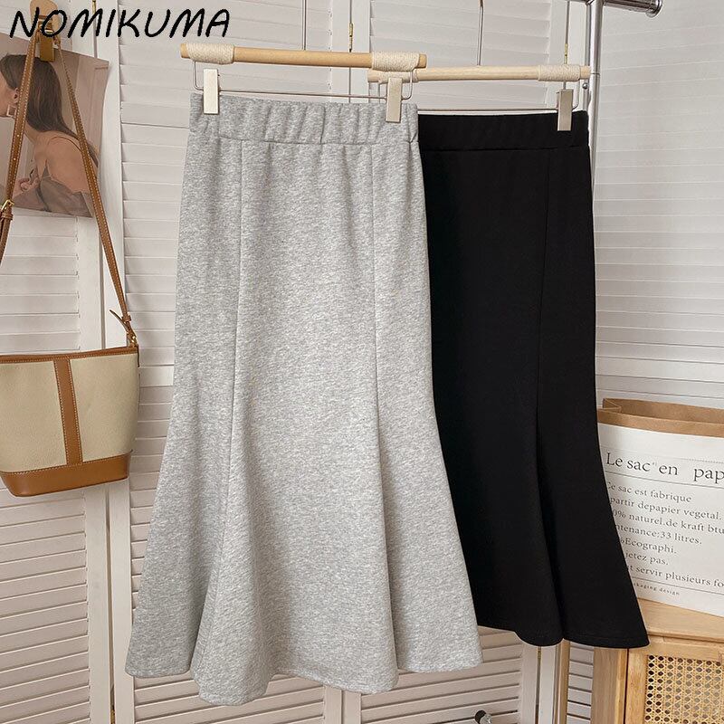 Nomikuma フリル ゴムウエスト トランペット スカート女性 2022 秋冬マーメイド スカート エラスティック 伸縮 オータム 秋物 ウィンター 冬物 kor38375344593