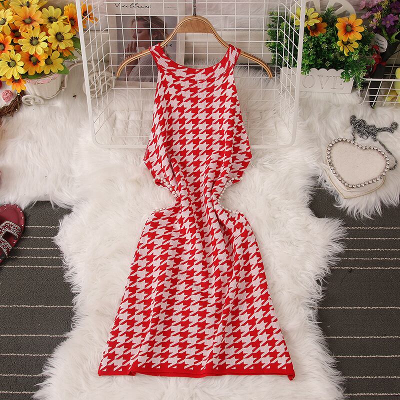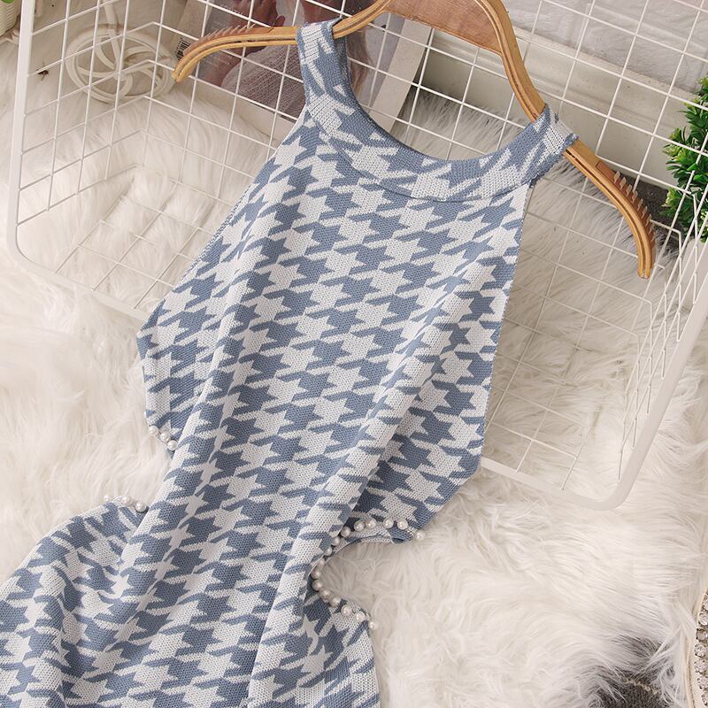 Nomikuma ホルターニットドレス女性鳥格子スリム Bodycorn ドレス 2022 夏 Swetaer ミニ Vestidos サマー 夏物 kor76986289842