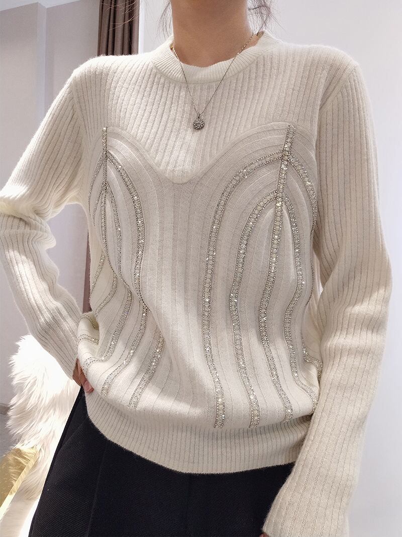 ノミクマ ダイヤモンド 秋冬 ボトムス ニットセーター 長袖 Oネック プルオーバー 因果プル ロング オータム 秋物 ウィンター 冬物 kor50364313429