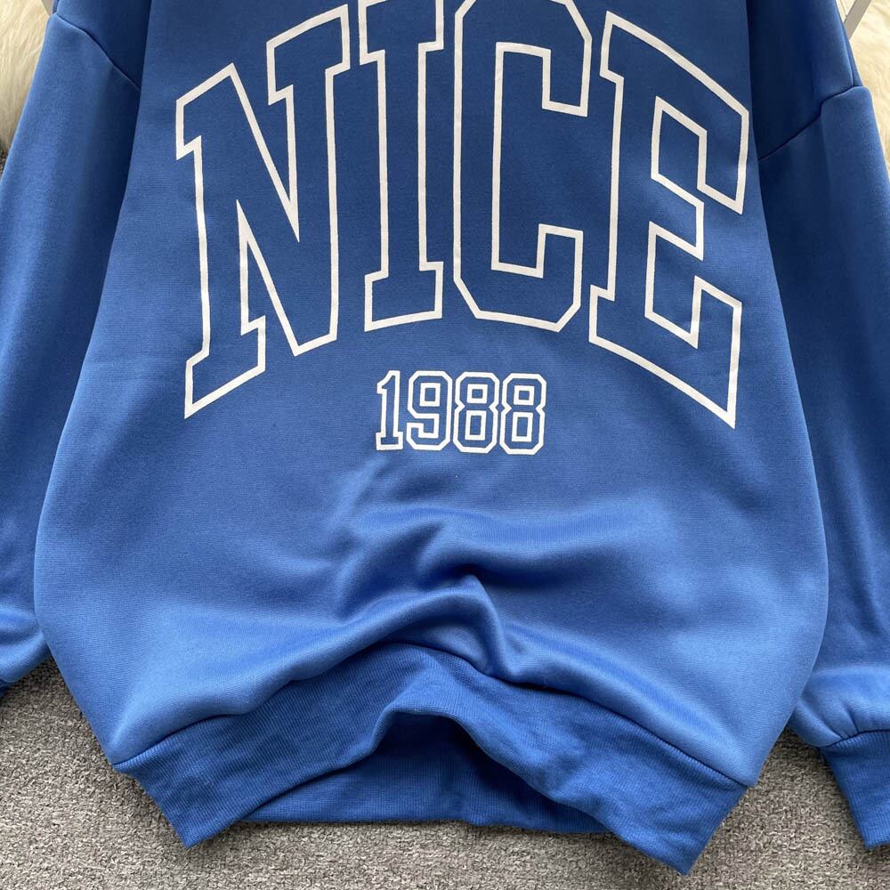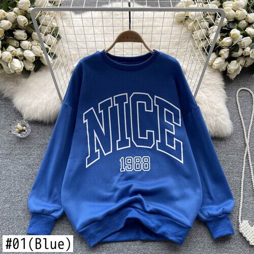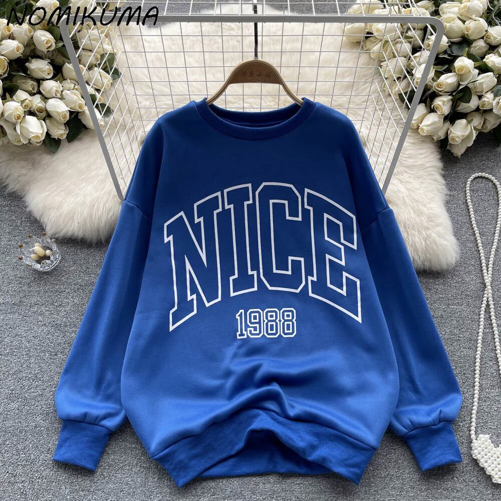 Nomikuma 2022 秋冬ストリート文字プリントスウェットシャツ因果長袖 O ネックプルオーバーパーカートップジャンパー ロング オータム 秋物 ウィンター 冬物 Oネック kor99172005471
