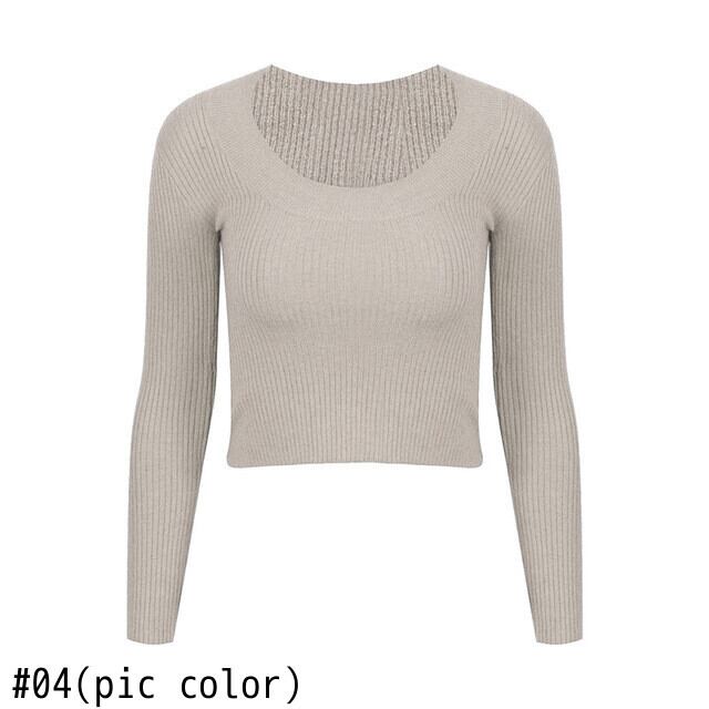 Nomikuma セクシーなスクエアカラースリムクロップニット固体長袖女性セーター女性秋冬ニットプルオーバー ロング オータム 秋物 ウィンター 冬物 ソリッドカラー スクウェア kor20776891879