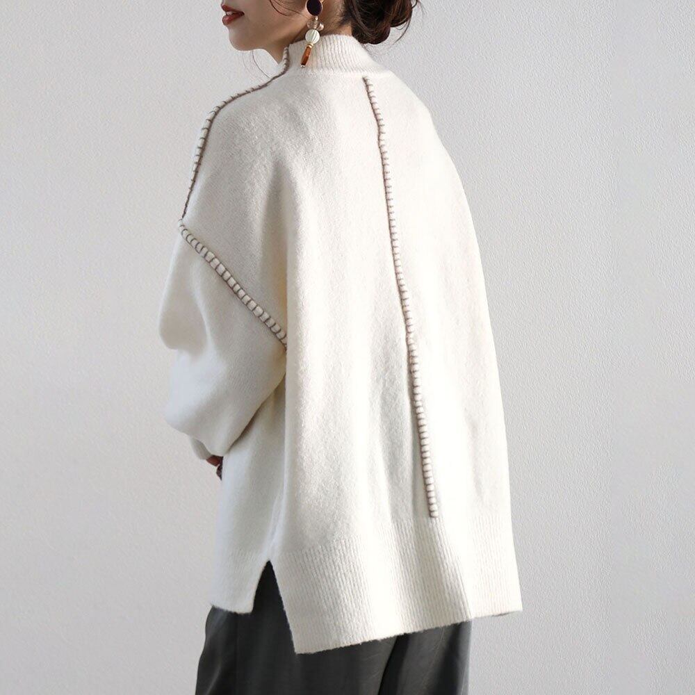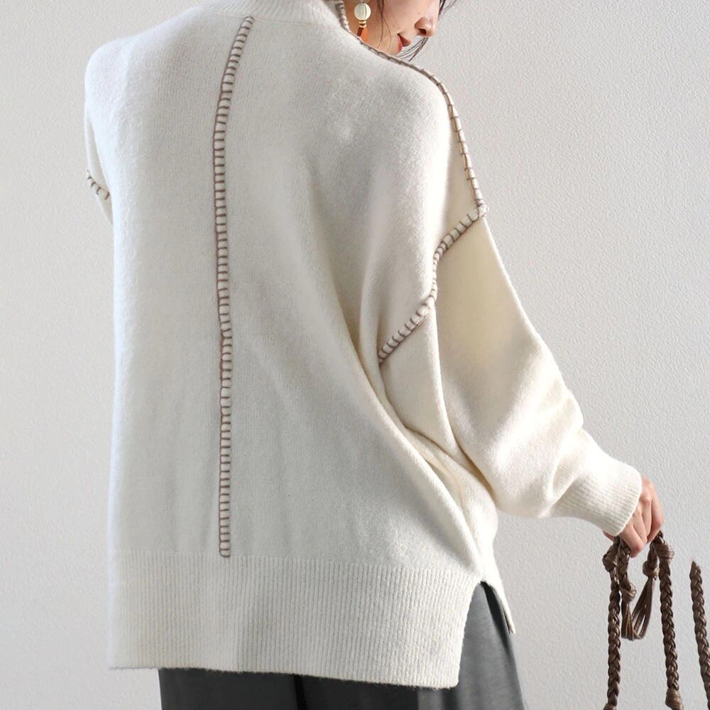 ノミクマプル秋冬因果スタンドネックバットウィングスリーブニットセーター無地プルオーバーニットトップス オータム 秋物 ウィンター 冬物 ソリッドカラー kor54397239724