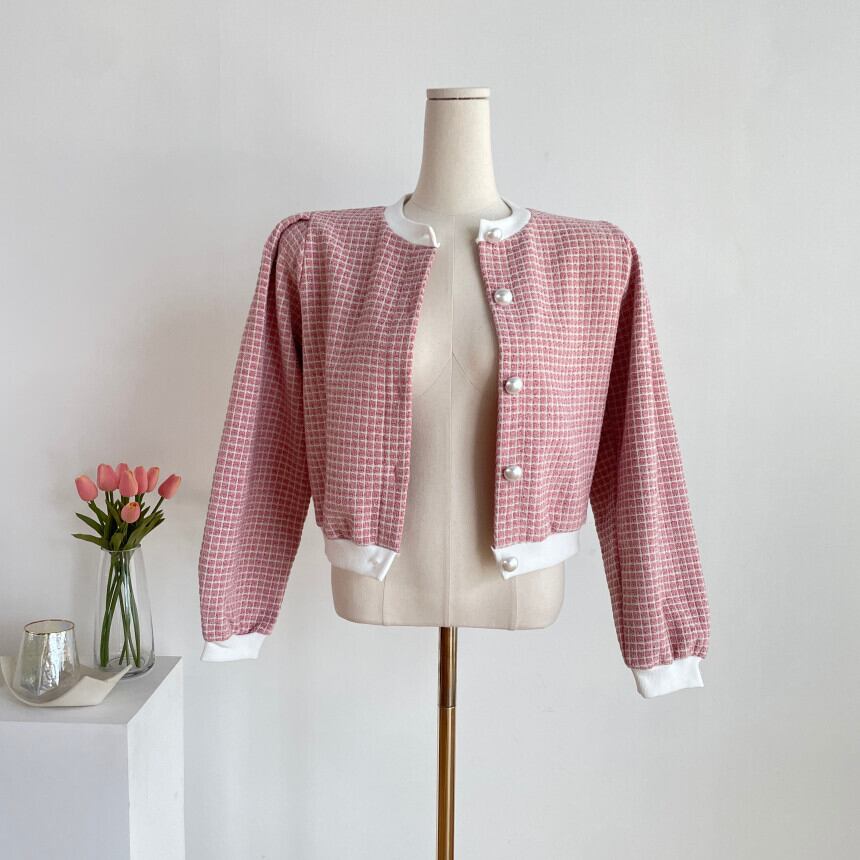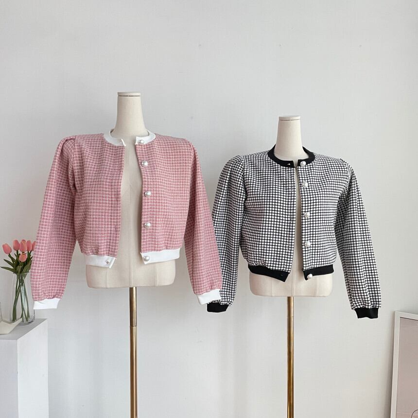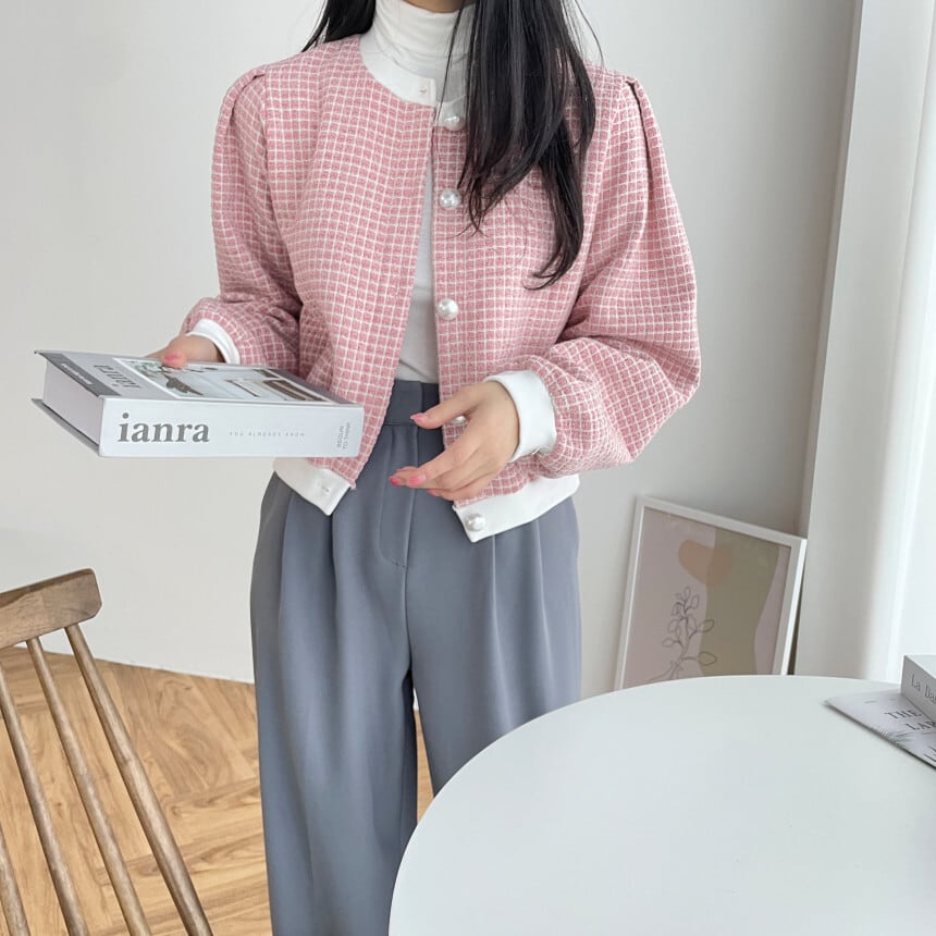 ノミクマ シックチェック柄ショートツイードコート ロングスリーブ Oネック カジュアルジャケット 2022秋冬 アウター トップス オータム 秋物 ウィンター 冬物 kor6479859254