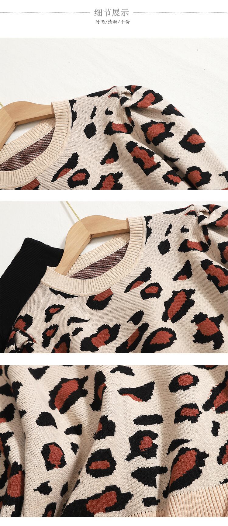 Nomikuma 2022 秋 2 点セットレディース衣装ヒョウ長袖 O ネックニット + ウエストレーススカート ロング オータム 秋物 Oネック kor82774413207