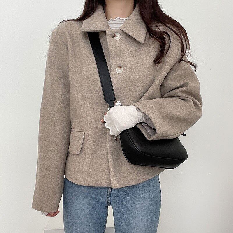 ノミクマ 無地ウールコート 長袖 ターンダウンカラー アウター トップス コーザル 2022 ジャケット ロング ソリッドカラー kor7644511823