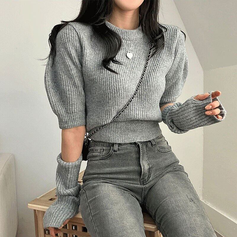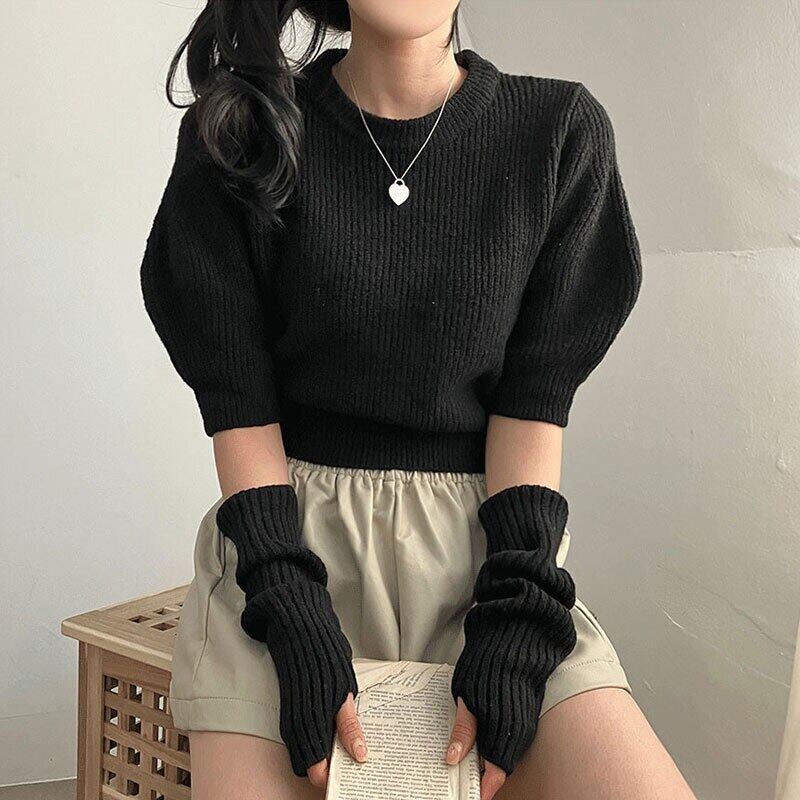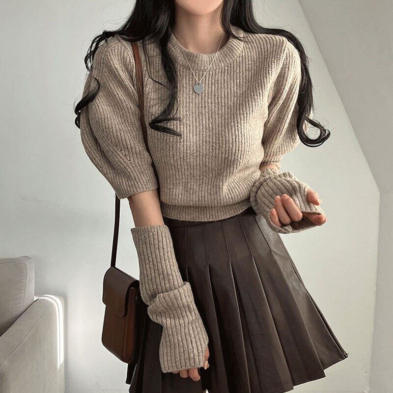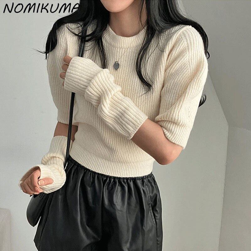 ノミクマ シック パフスリーブ Oネック ニットセーター 2022秋冬 ニット トップス カジュアル プルオーバー 無地 プルオーバー オータム 秋物 ウィンター 冬物 ソリッドカラー kor97331405667