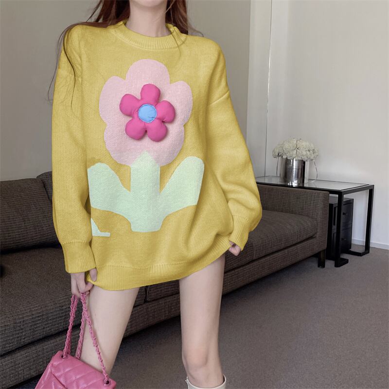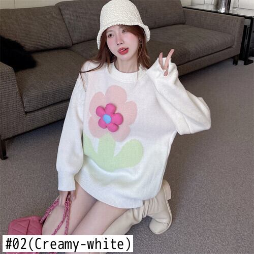 Nomikuma 秋冬 スウィート フラワー ニット プルオーバー セーター コート カジュアル ロングスリーブ Oネック 2022年 ニット 大人ガーリー キュート オータム 秋物 ウィンター 冬物 フラワーデザイン kor8656359450