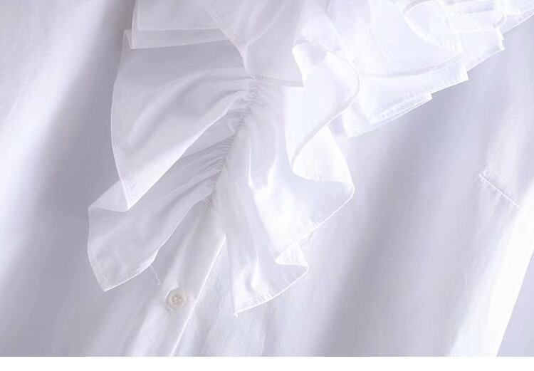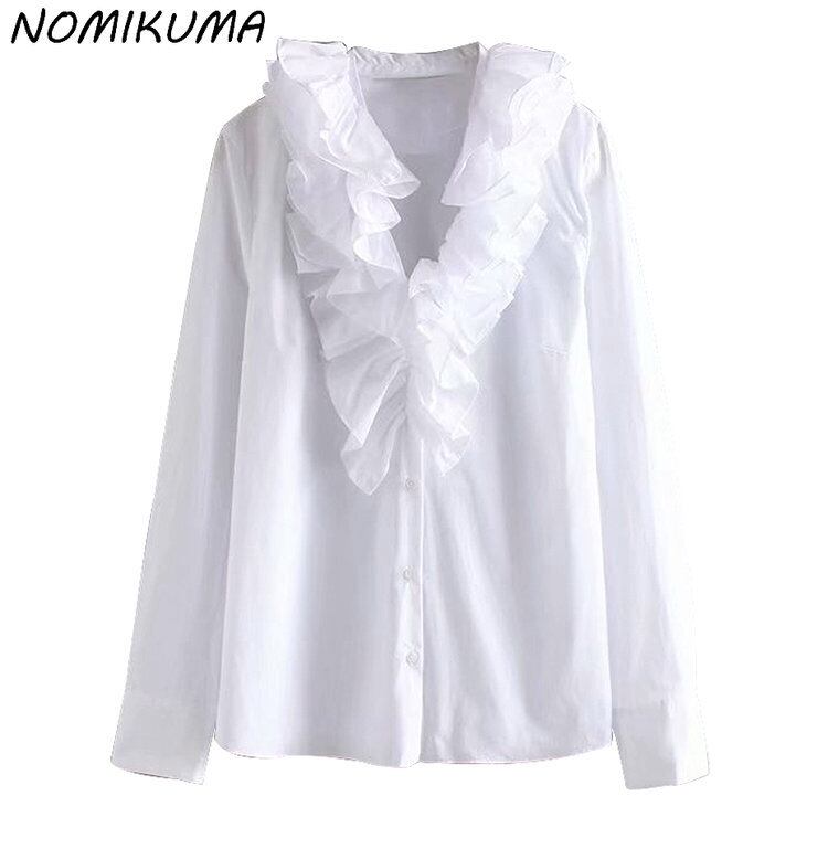 Nomikuma 甘いフリル V ネックの女性ブラウス長袖春秋シャツ因果シングルブレストストリートトップス ロング 大人ガーリー スウィート キュート カジュアル スプリング 春物 オータム 秋物 Vネック kor58791612088