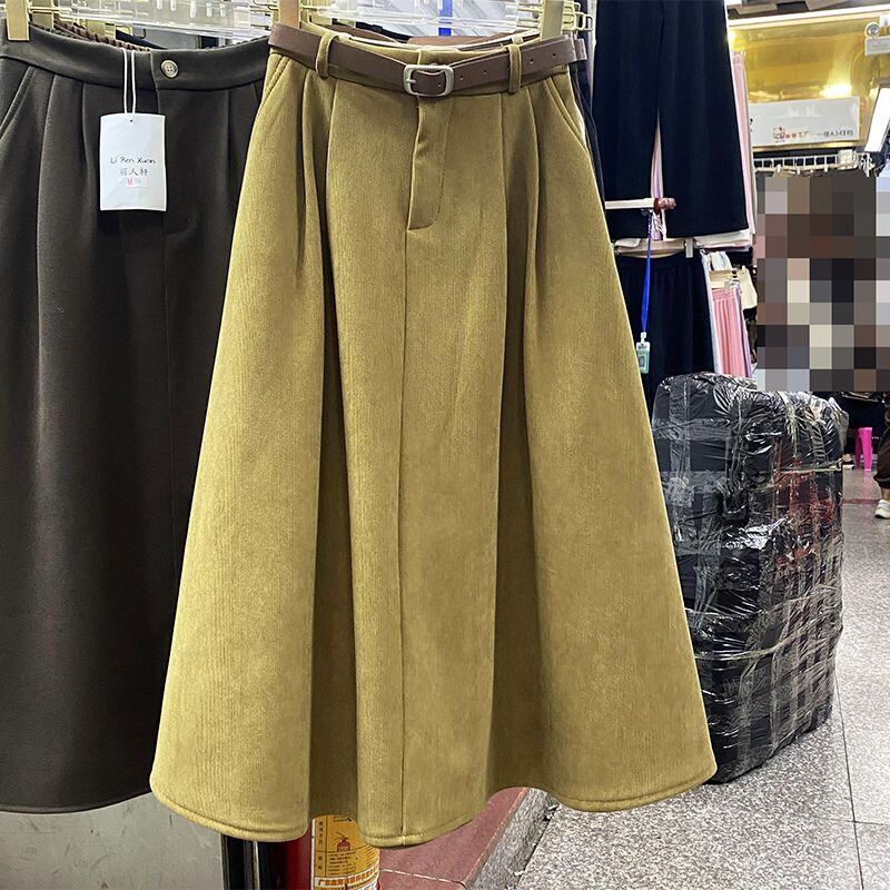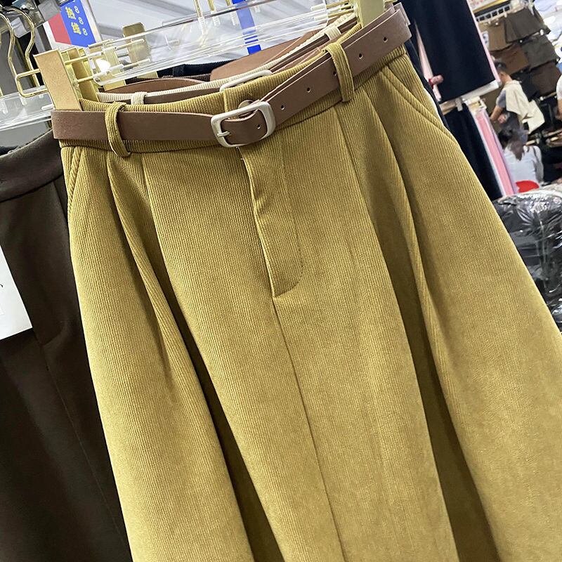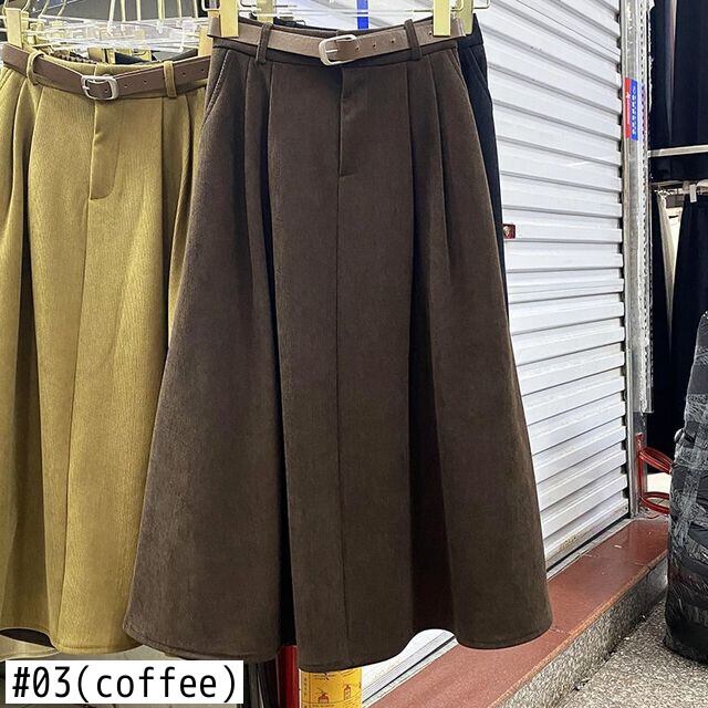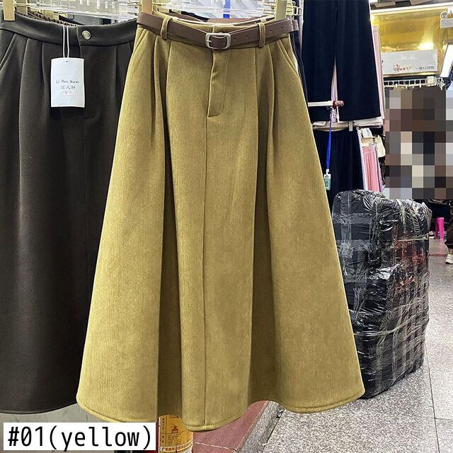Nomikuma 冬ウエスト コーデュロイ スカート ベルト付き ボトム 因果無地 女性スカート ファルダス モーダ ウィンター 冬物 ハーネス ソリッドカラー kor43662022772