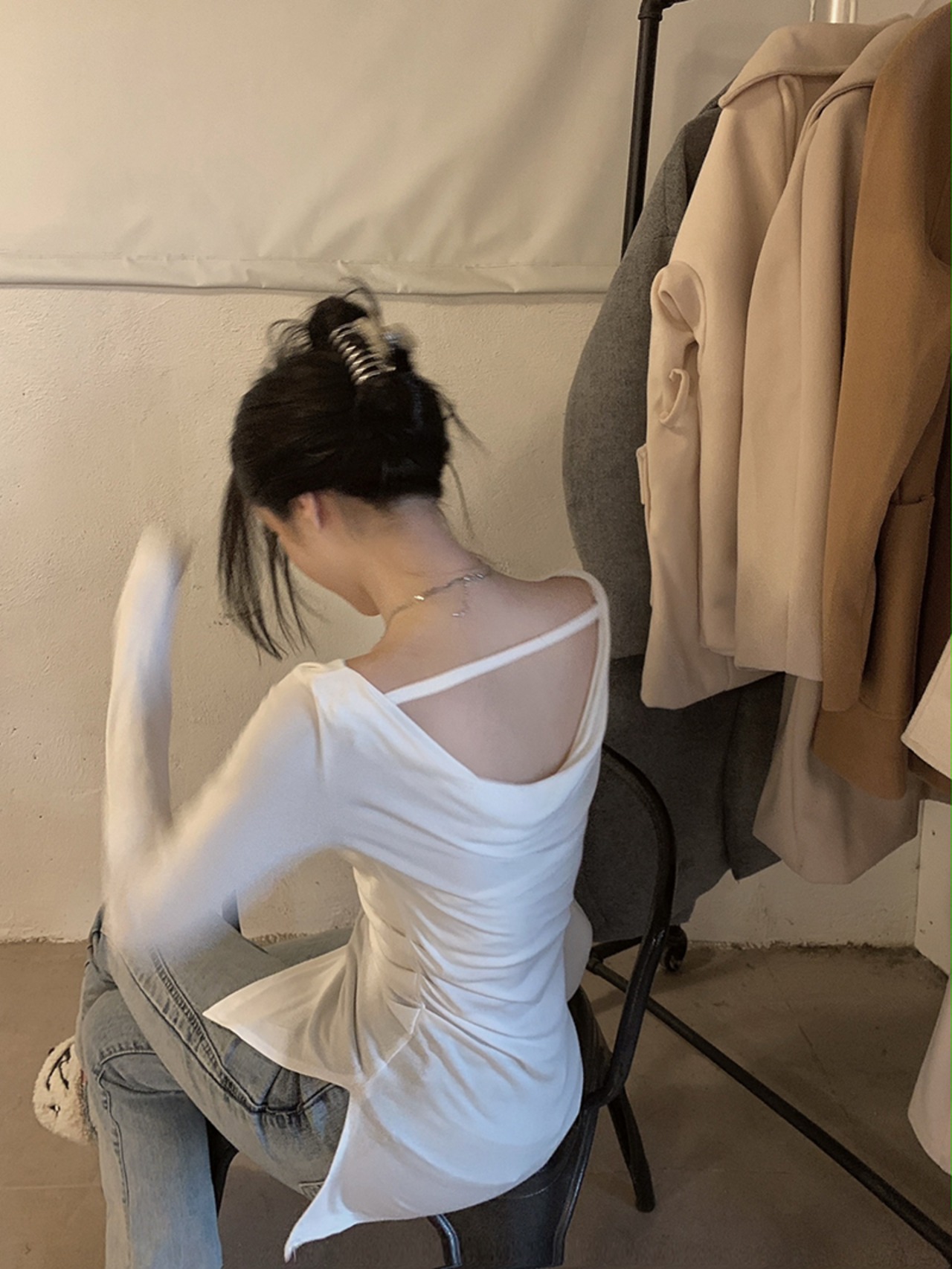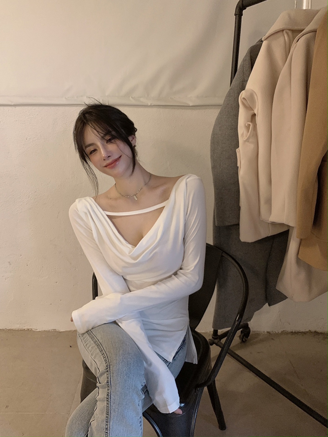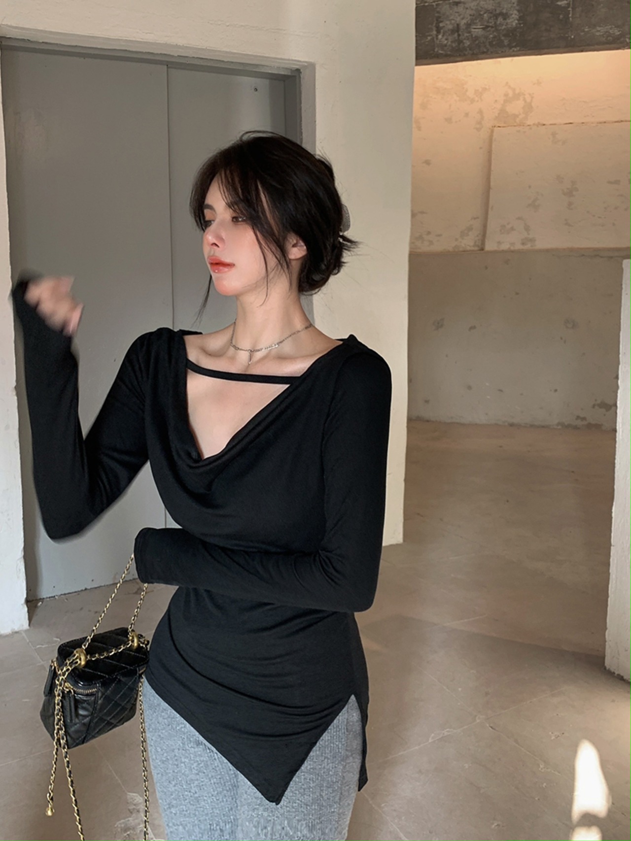 Nomikuma セクシーな秋の底入れトップス 2022 不規則なひだ V ネックグラフィック Tシャツソリッド長袖女性 ロング オータム 秋物 Vネック ソリッドカラー kor62515231025