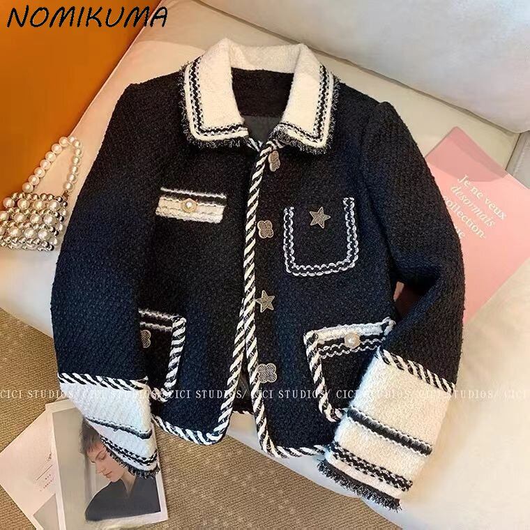 Nomikuma ヒットカラー女性ショートジャケット秋冬テル長袖ターンダウン襟コート因果生き抜く ロング オータム 秋物 ウィンター 冬物 kor53666494185