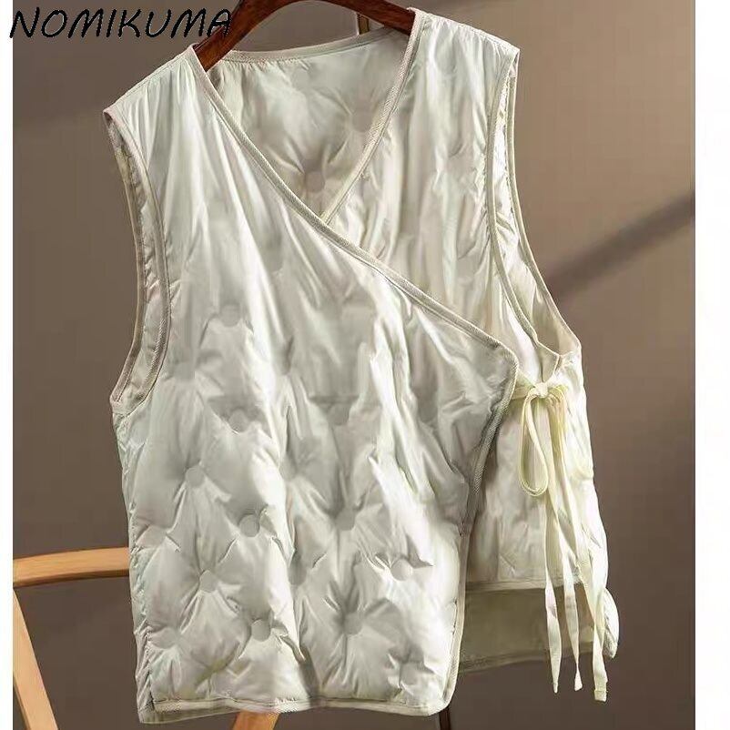 Nomikuma レースアップ V ネックノースリーブパーカーベスト 2022 秋冬の女性のチョッキ因果パーカーベストジャケット オータム 秋物 ウィンター 冬物 Vネック kor20989400287