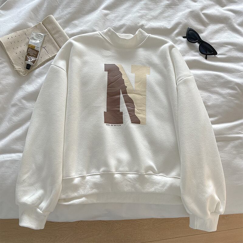 Nomikuma 文字 O ネックプリント因果スウェットシャツ秋冬フリース長袖パーカートップスプルオーバー女性ジャンパー ロング オータム 秋物 ウィンター 冬物 Oネック kor61419895251