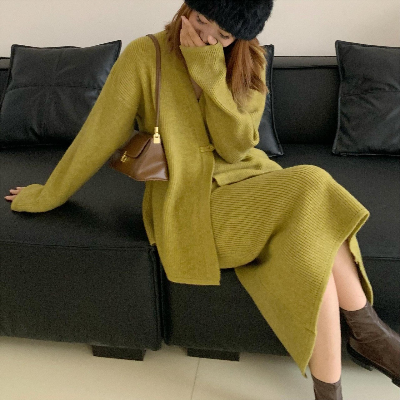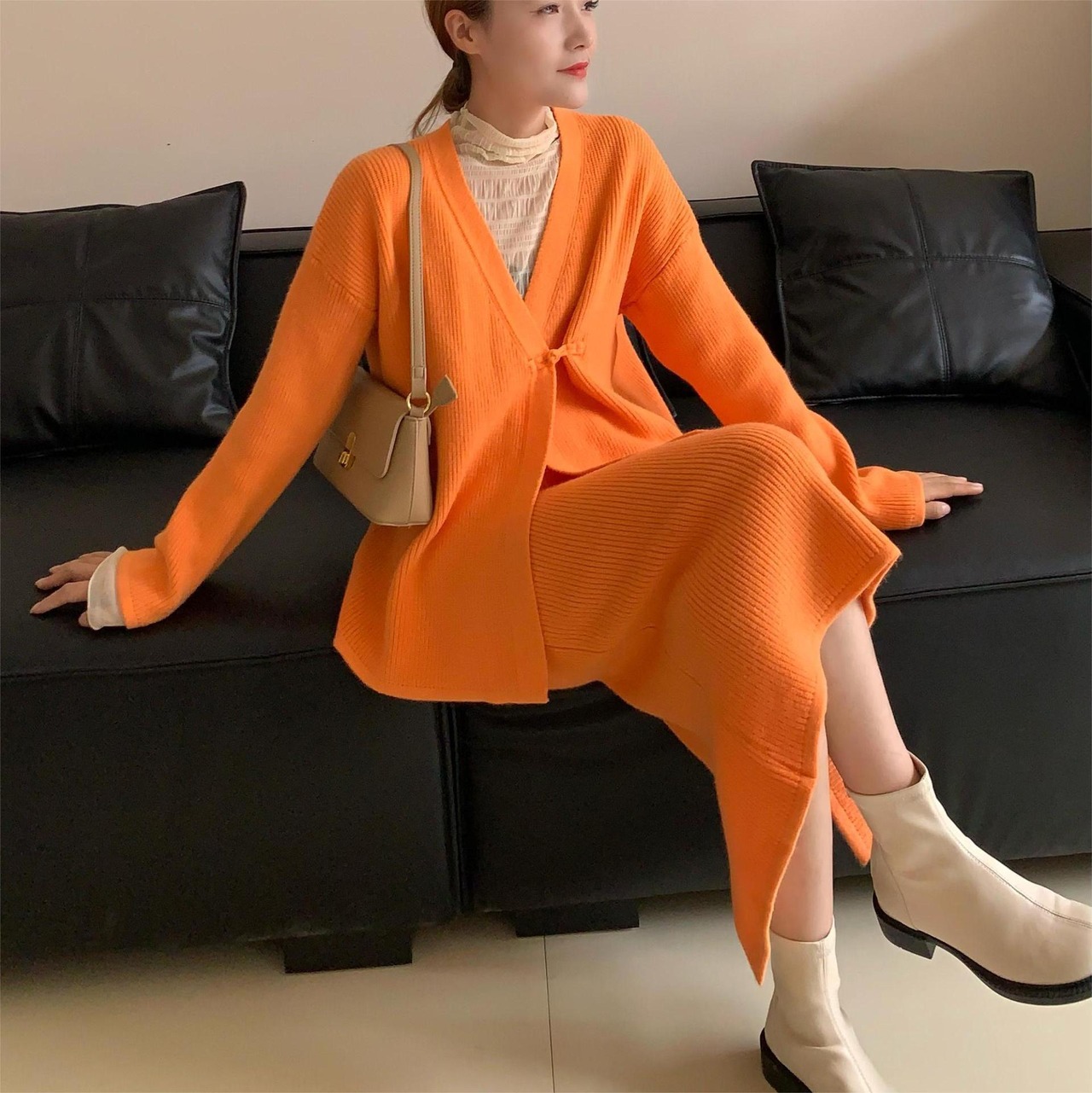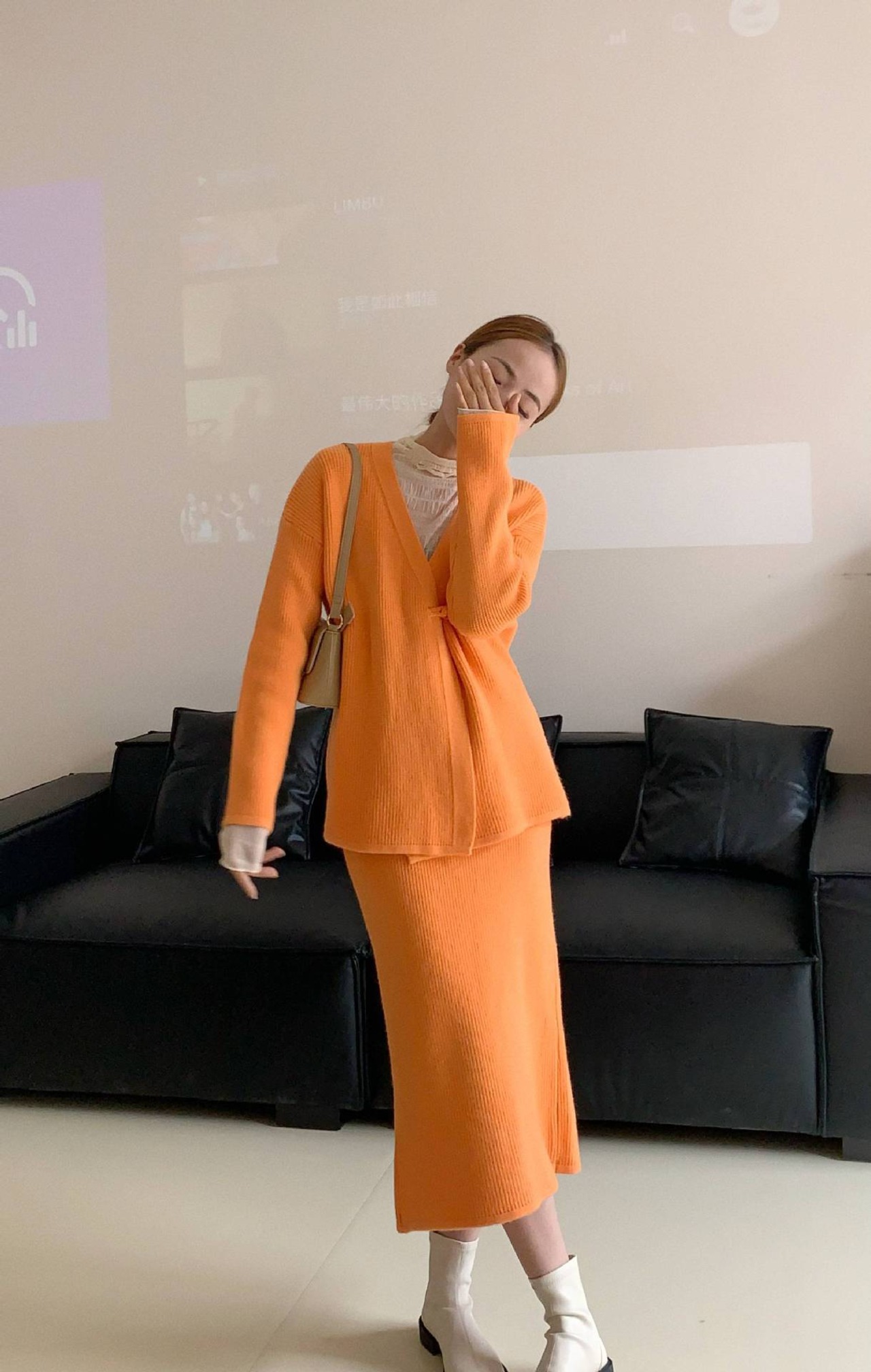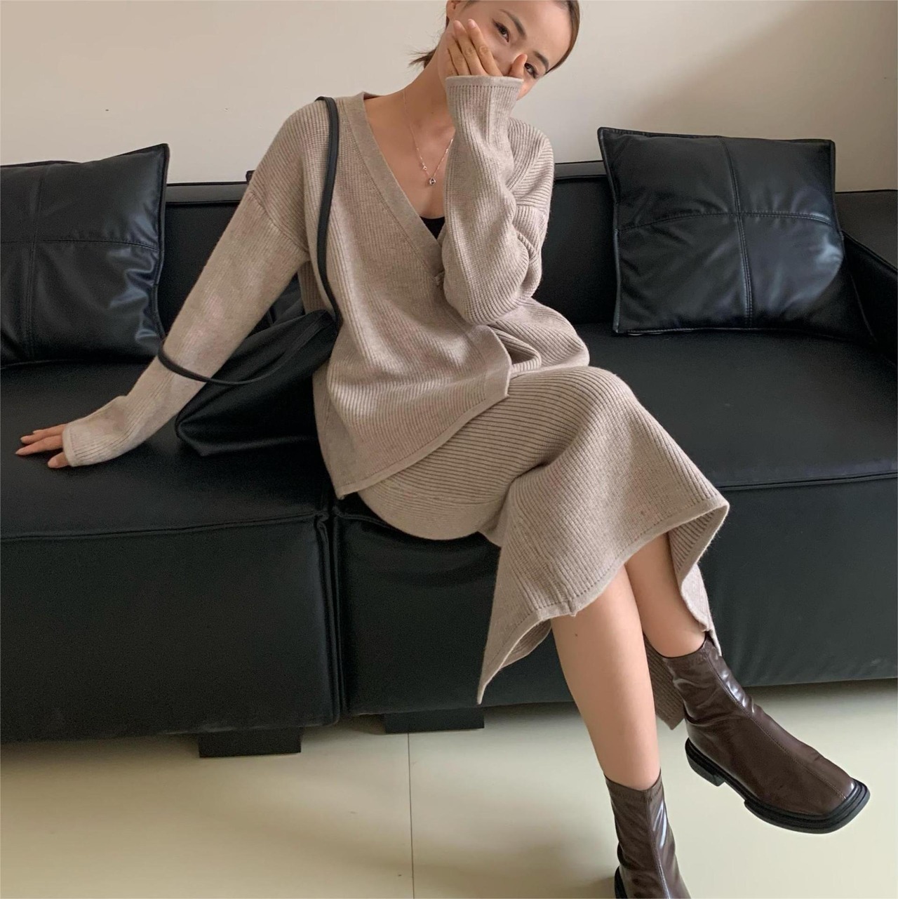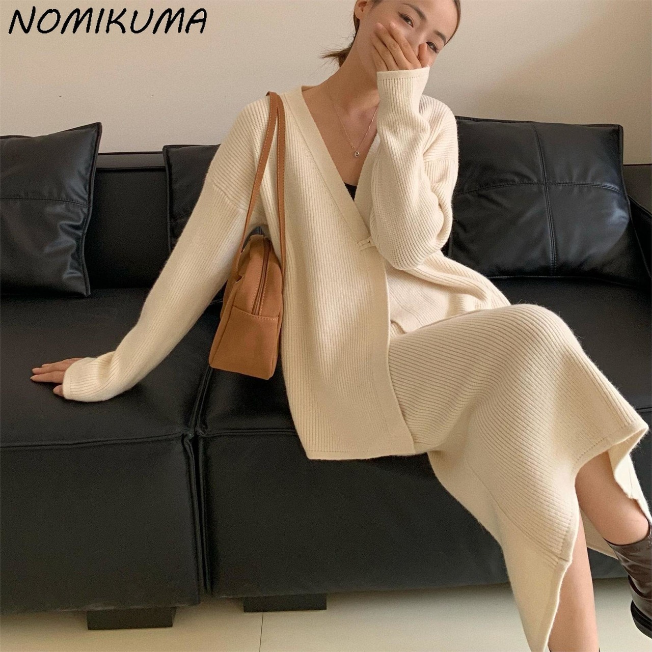 Nomikuma ニットウェアセーターセット女性 V ネックロング Lseeve ニットトップス + ウエストスリムスカート秋冬二枚 オータム 秋物 ウィンター 冬物 Vネック kor2738868632