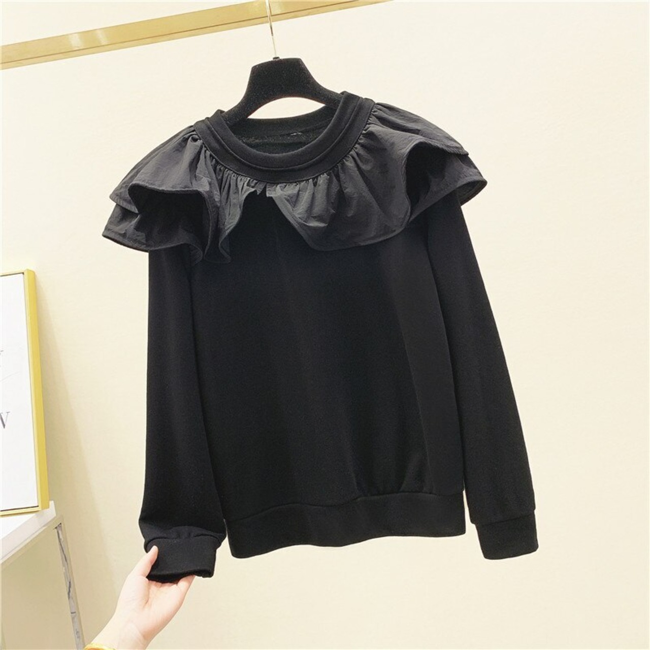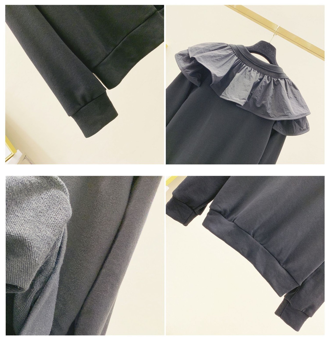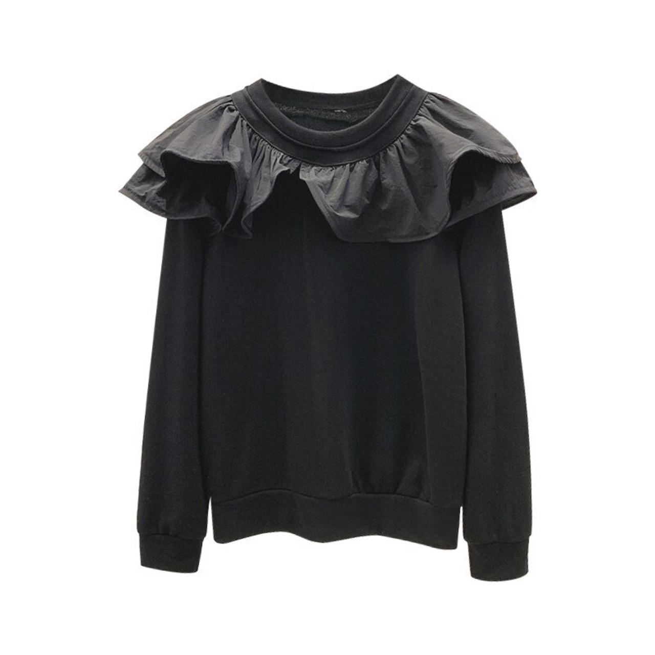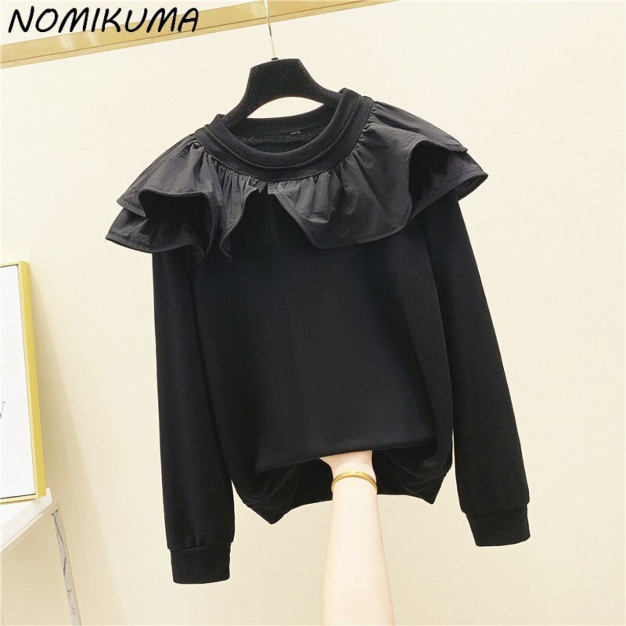 Nomikuma フリル パッチワーク O ネック プルオーバー女性トレーナー因果秋冬パーカー トップ ジャンパー オータム 秋物 ウィンター 冬物 Oネック kor68307250843