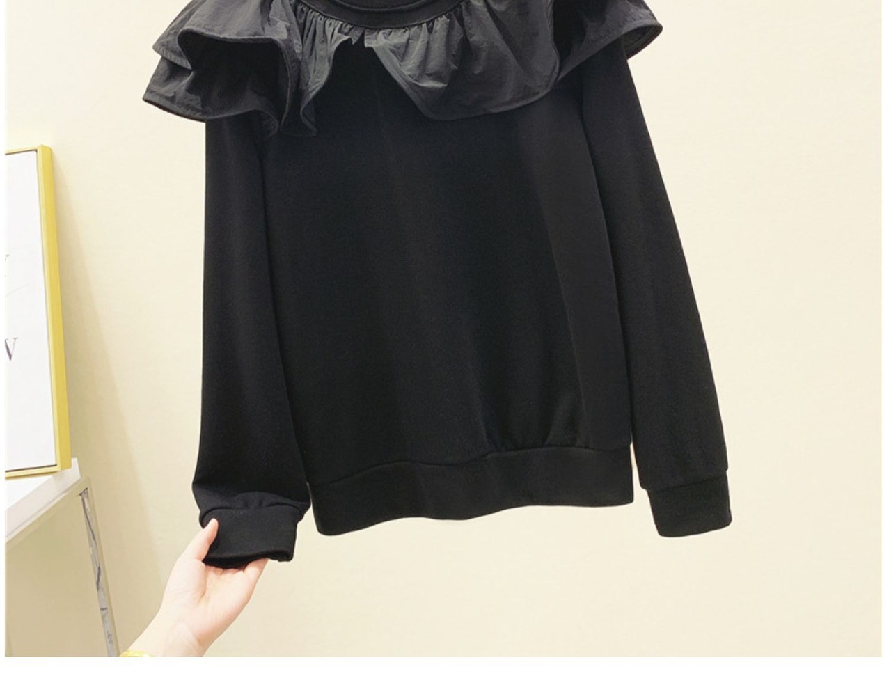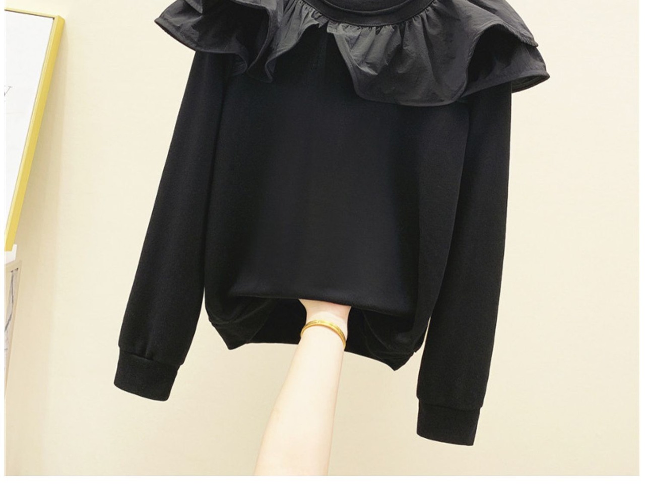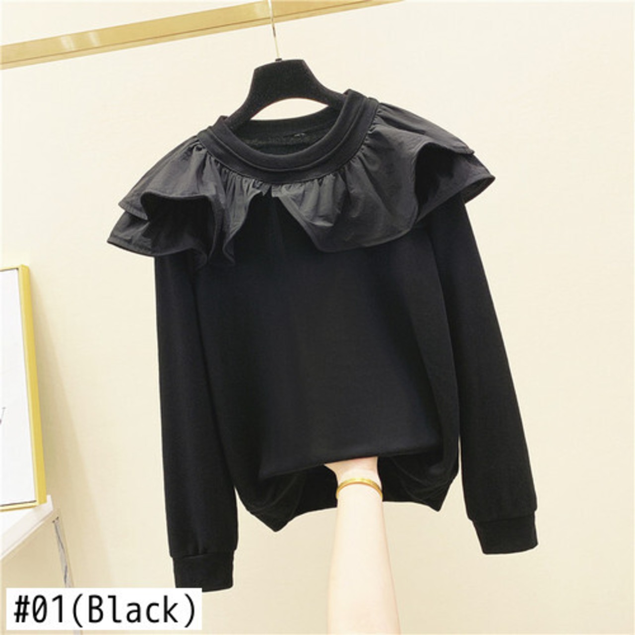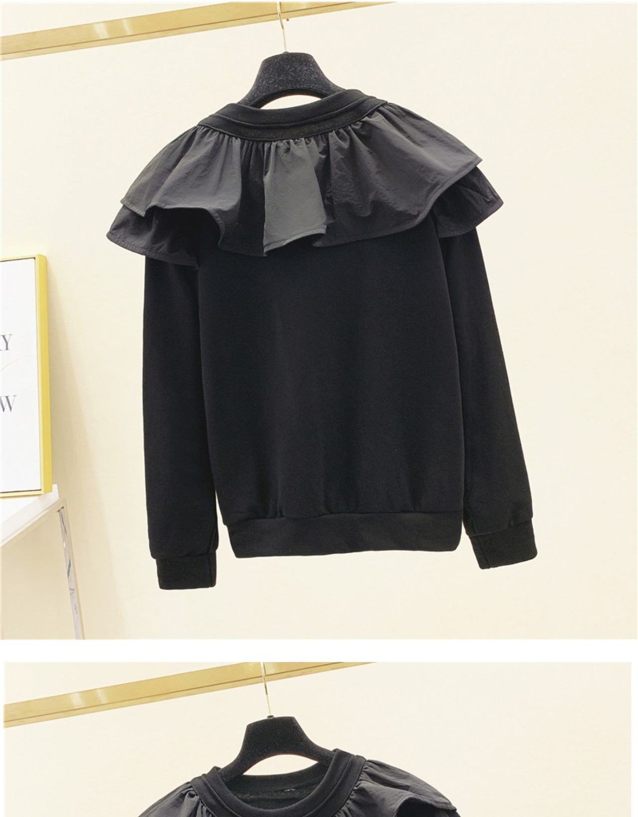 Nomikuma フリル パッチワーク O ネック プルオーバー女性トレーナー因果秋冬パーカー トップ ジャンパー オータム 秋物 ウィンター 冬物 Oネック kor68307250843