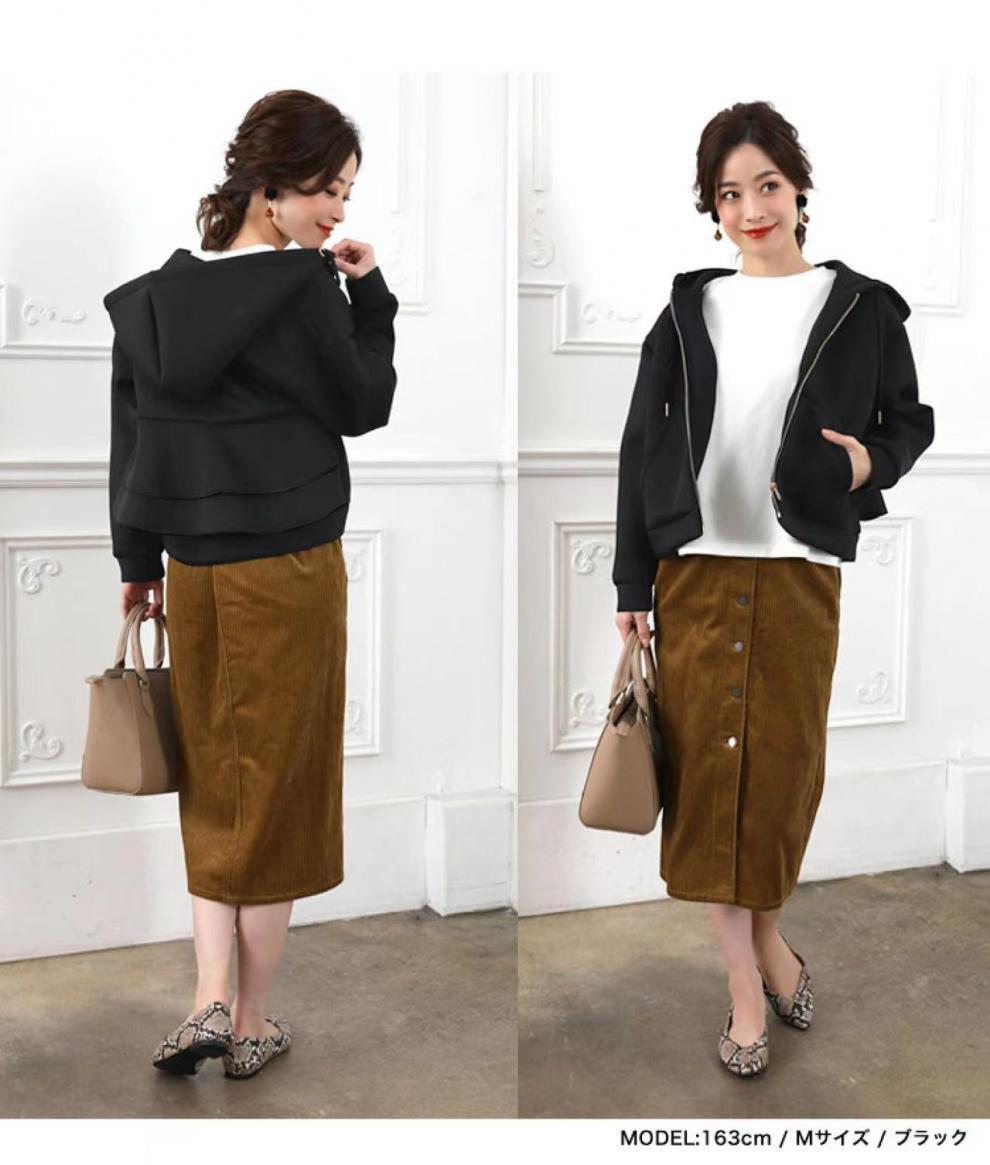 Nomikuma 2022 スタイルトレーナーコート秋冬フード付き因果女性カーディガンシックなフリルジッパー長袖パーカー ロング オータム 秋物 ウィンター 冬物 kor67791441810