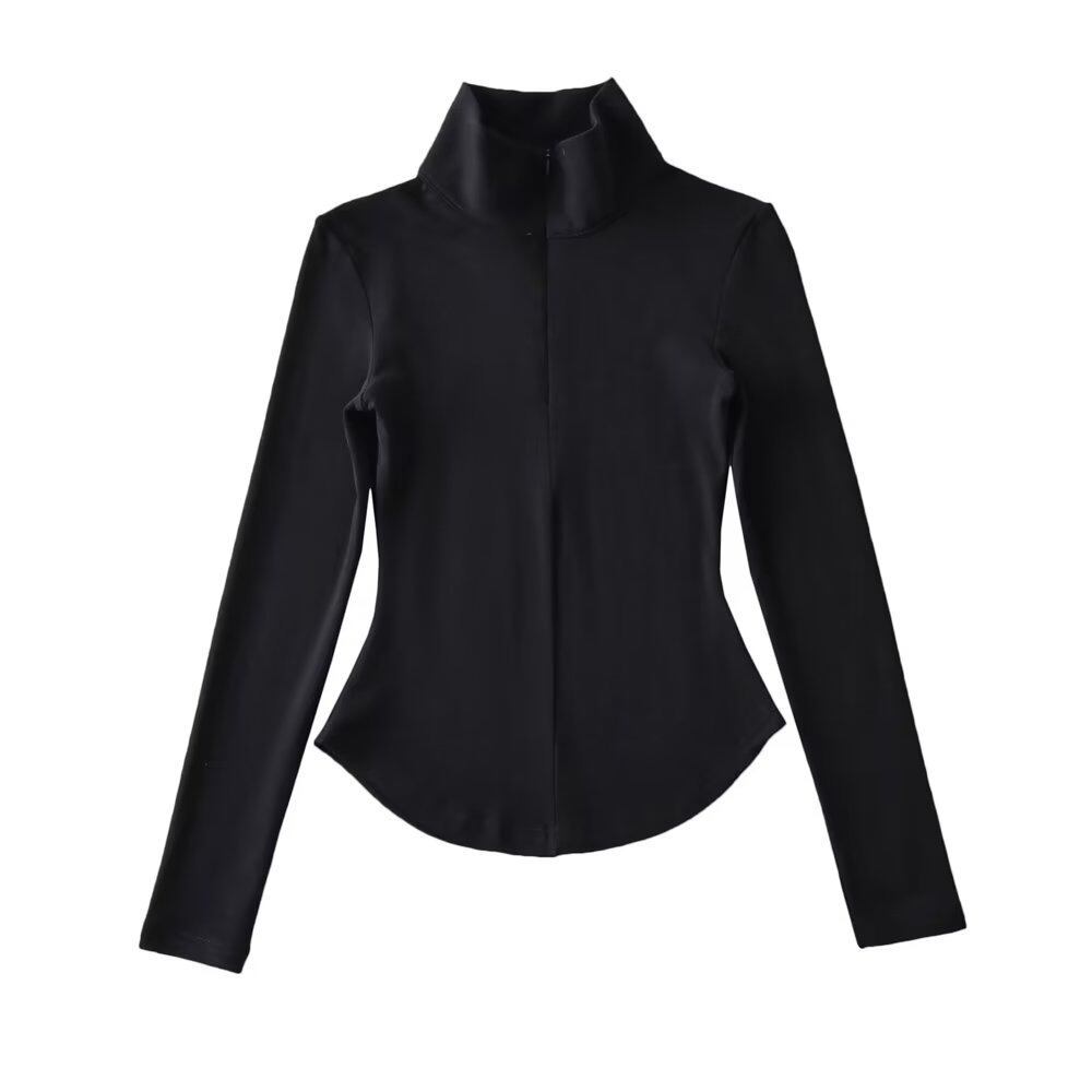 Nomikuma ハーフジッパースリムショート Tシャツ春秋長袖シャツ女性のセクシーなソリッドグラフィック Tシャツ ロング スプリング 春物 オータム 秋物 ソリッドカラー kor1020869087