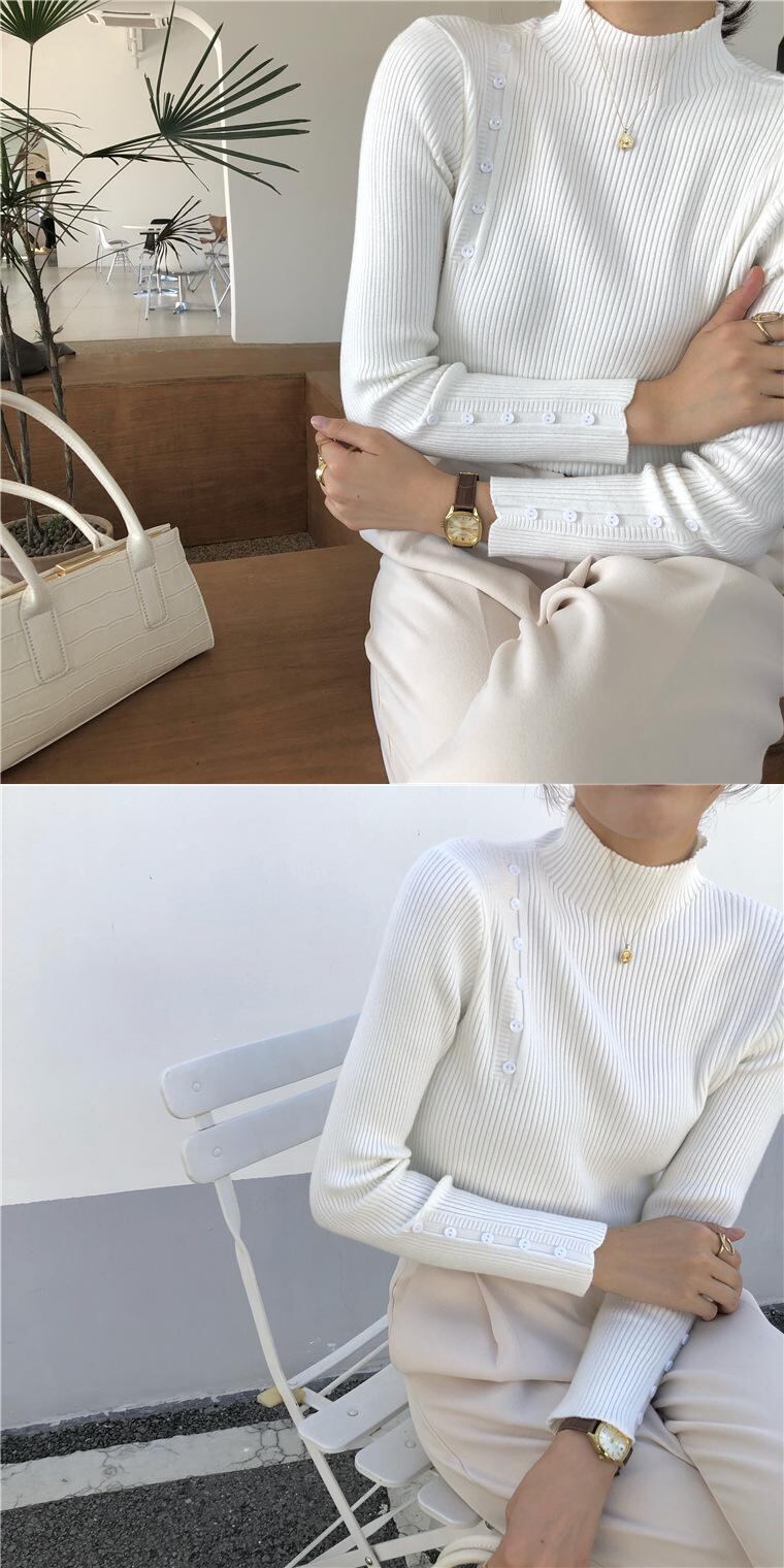 Nomikuma ハーフカラーシックな bottons セーター女性秋冬底入れニット長袖スリムストレッチニットトップス ロング オータム 秋物 ウィンター 冬物 kor88739181120