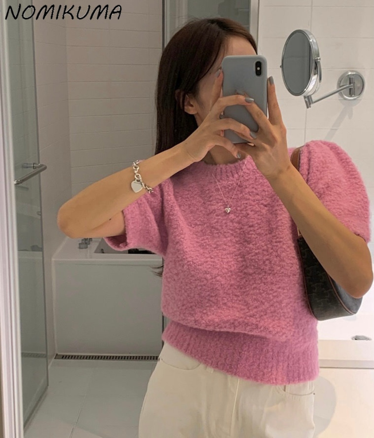 Nomikuma パフスリーブ O ネックプルオーバーニットセーター因果無地甘い女性ニット秋冬プル 大人ガーリー スウィート キュート カジュアル オータム 秋物 ウィンター 冬物 Oネック ソリッドカラー kor65238504770