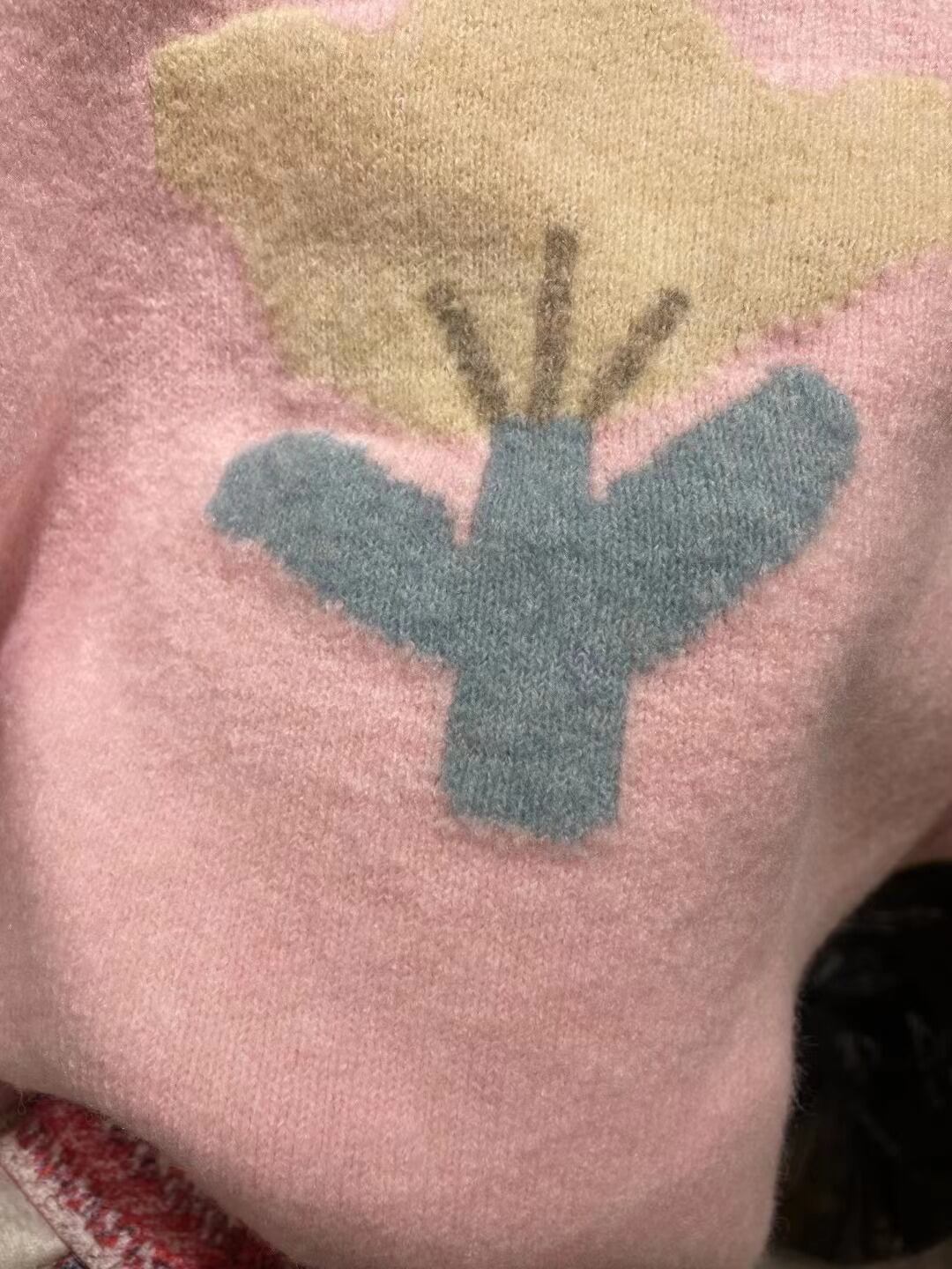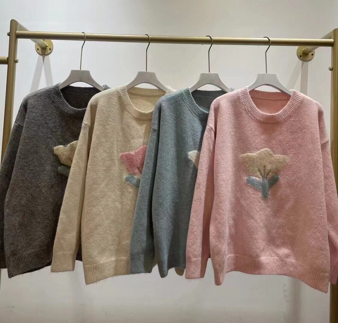 Nomikuma プルオーバーセーター女性秋冬フラワーニット因果長袖 O ネックニットトップス ロング オータム 秋物 ウィンター 冬物 Oネック フラワーデザイン kor16064465740