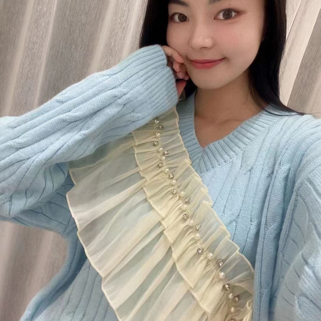 ノミクマ プルシック ビーズ フリル パッチワーク ニット セーター 2022年 秋冬 ツイスト プルオーバー ニット トップス ウィンター 冬物 kor80584086393