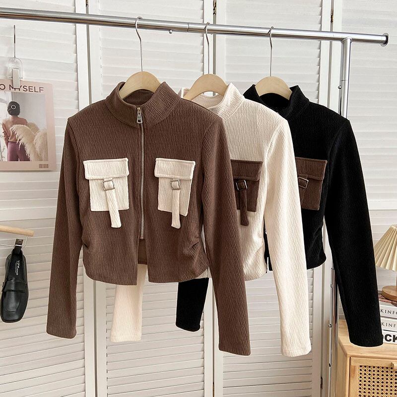 Nomikuma ヒットカラースタンドネックジッパー長袖ショートコート女性 2022 秋冬生き抜くトップジャケット ロング オータム 秋物 ウィンター 冬物 kor61592063733
