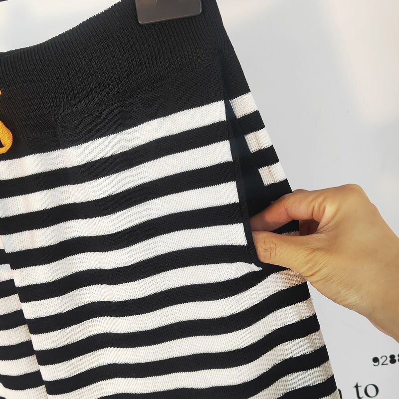 Nomikuma ヒットカラーニットストライプ Letetrs ハーレムパンツレースアップウエスト女性ズボン因果 2022 春秋のセーターパンツ スプリング 春物 オータム 秋物 kor19988253387