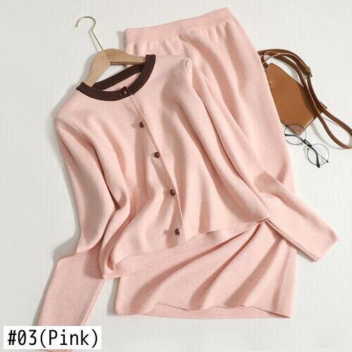 Nomikuma 2 点セット女性ヒットカラー O ネックシングルブレストニットカーディガンコート + ウエストセータースカート衣装 Oネック kor81919659267