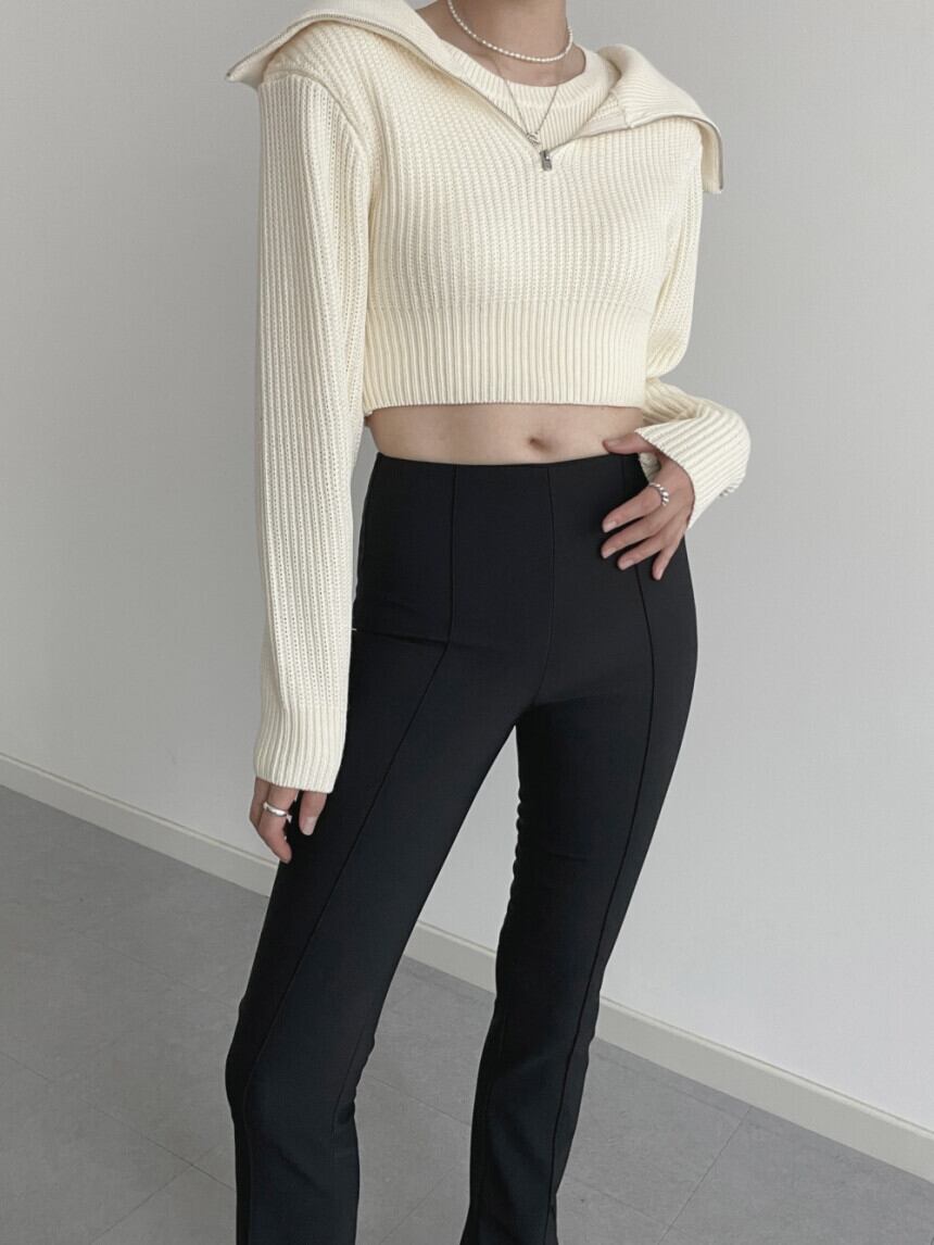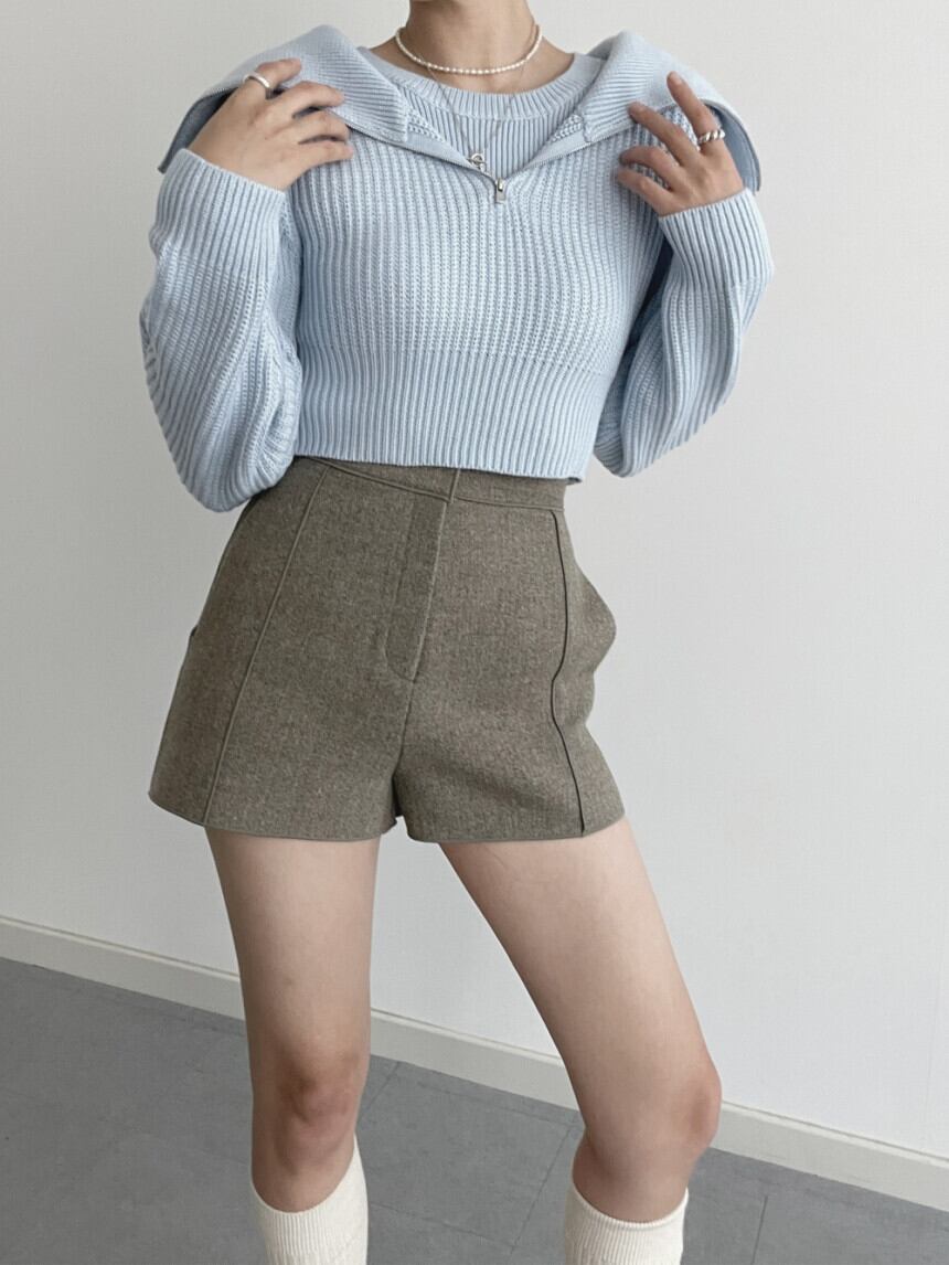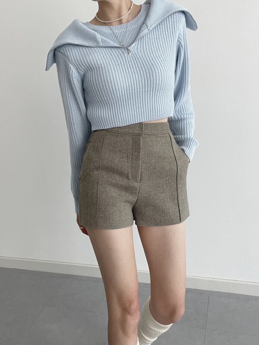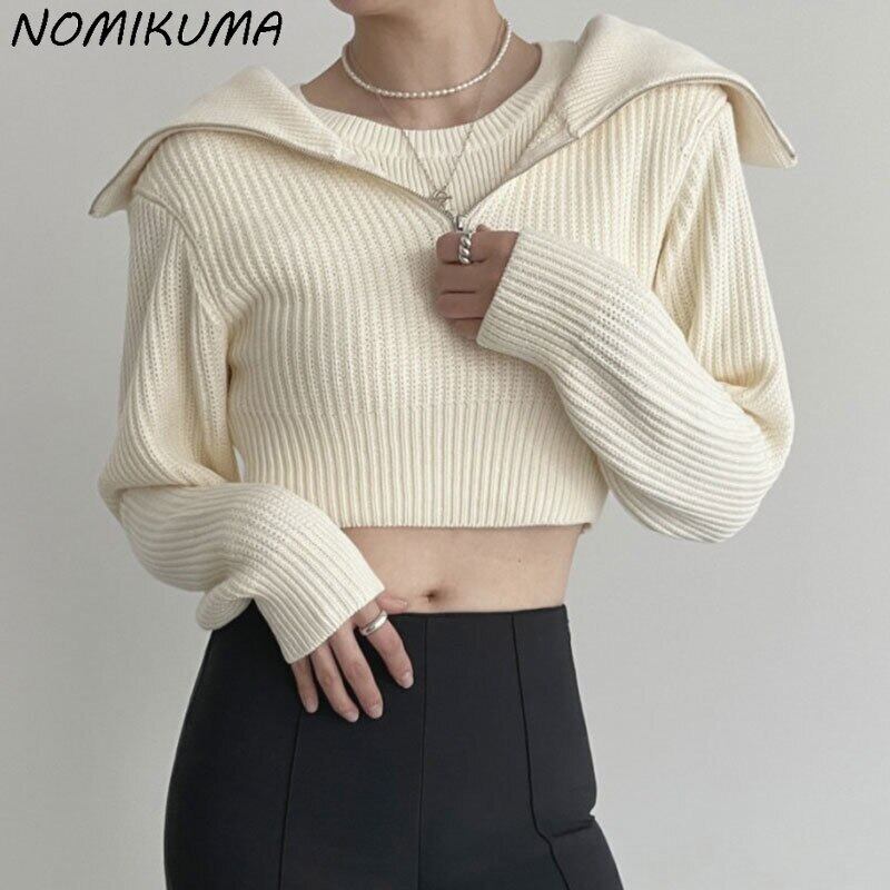 Nomikuma 春秋フェイク二枚ショート Silm ニットトップス長袖スリムクロップセータープルオーバー ロング スプリング 春物 オータム 秋物 kor72691994520