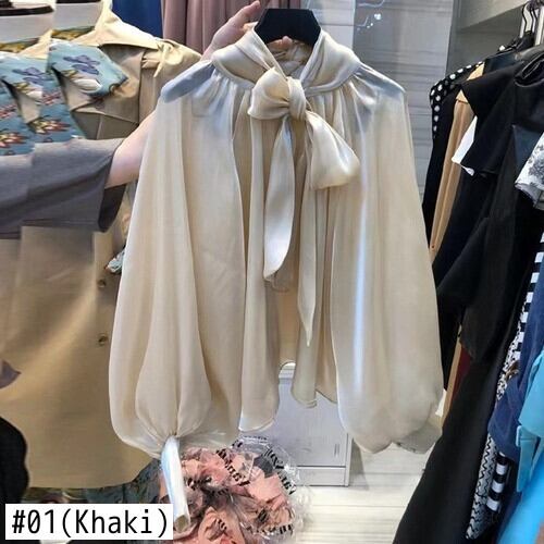 Nomikuma ランタンスリーブ弓包帯ブラウストップ女性春秋シャツ因果デ リボン スプリング 春物 オータム 秋物 kor61336518198