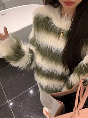 Nomikuma ストライプ女性セーターフェイクモヘア秋冬プル長袖 O ネックプルオーバーニットトップス ロング オータム 秋物 ウィンター 冬物 ファー Oネック kor75247906801