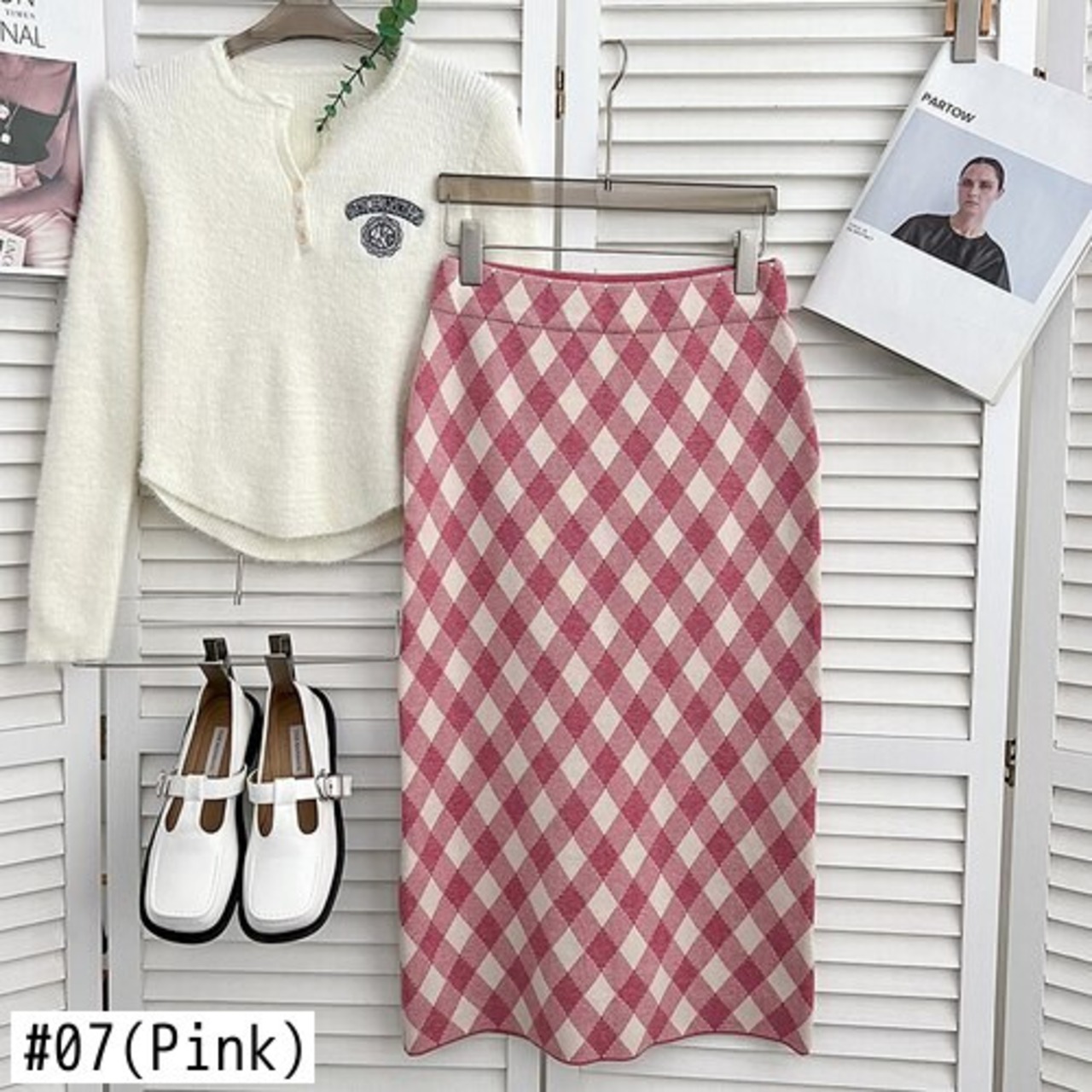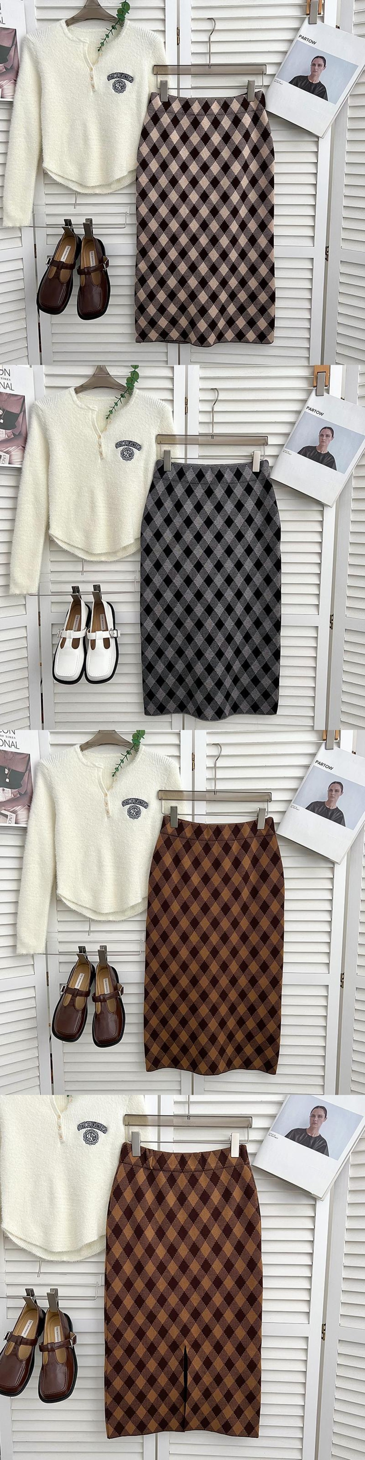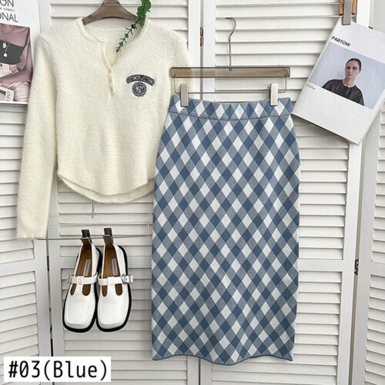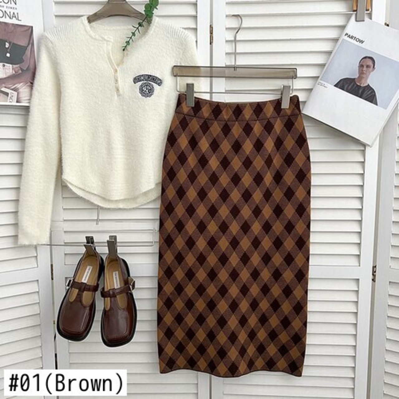 ノミクマ ヒットカラー アーガイル セーター スカート ウエスト 秋冬 ニット スリム ストレッチ スカート オータム 秋物 ウィンター 冬物 kor70742621163