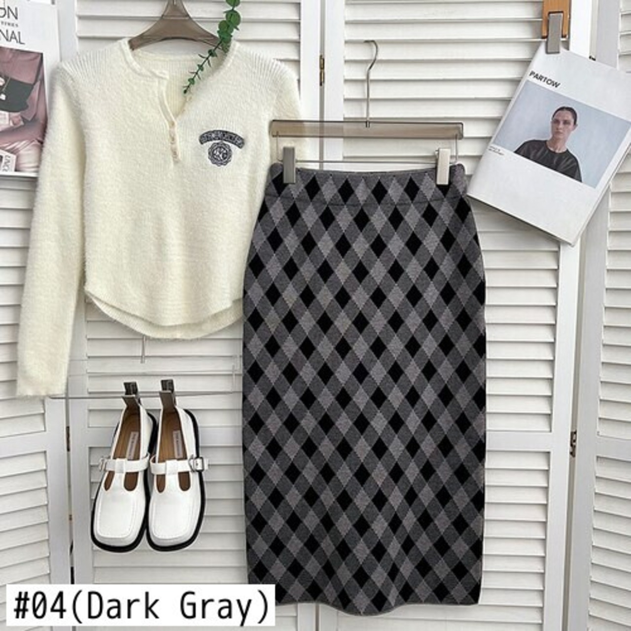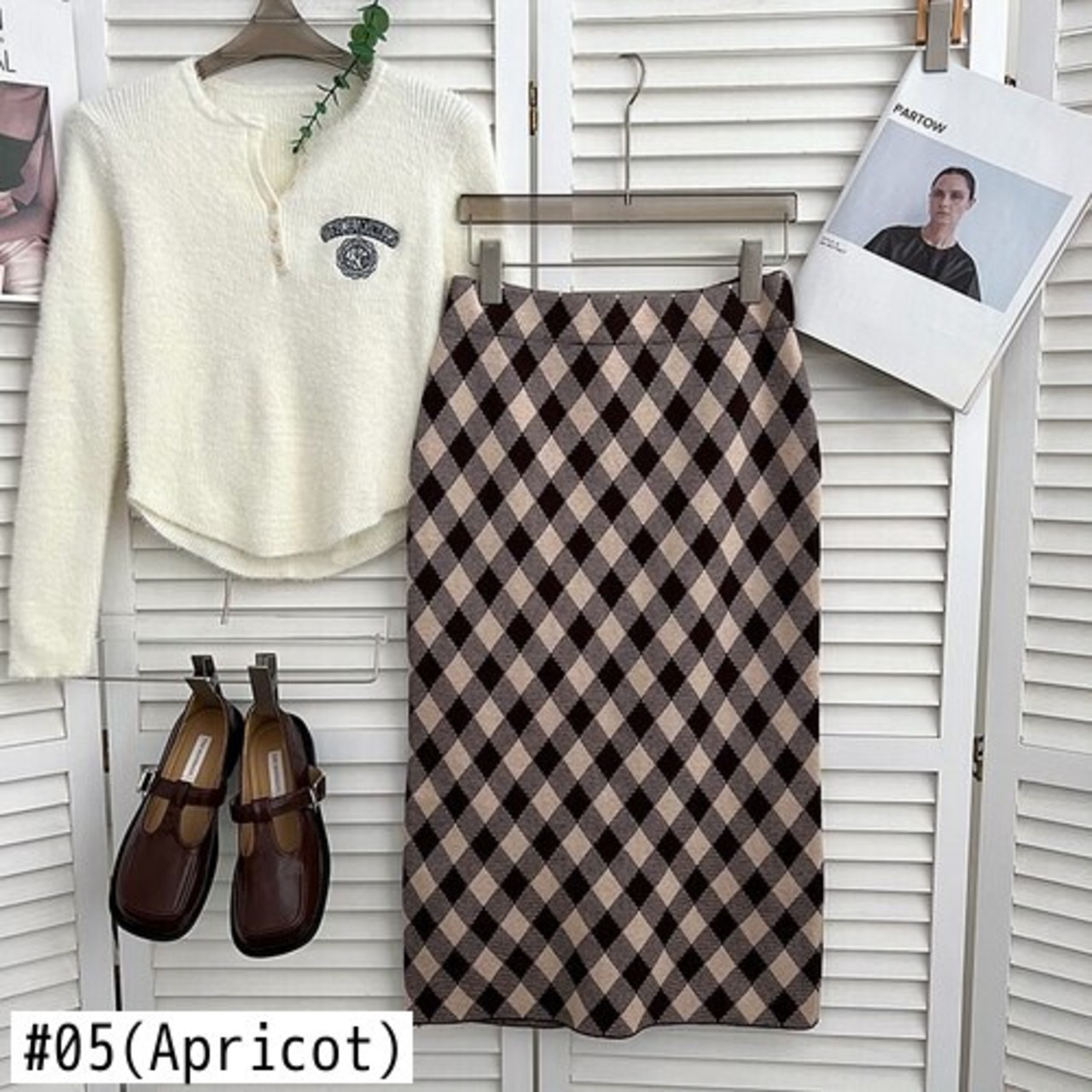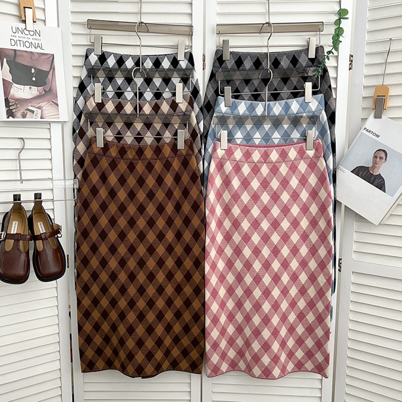 ノミクマ ヒットカラー アーガイル セーター スカート ウエスト 秋冬 ニット スリム ストレッチ スカート オータム 秋物 ウィンター 冬物 kor70742621163