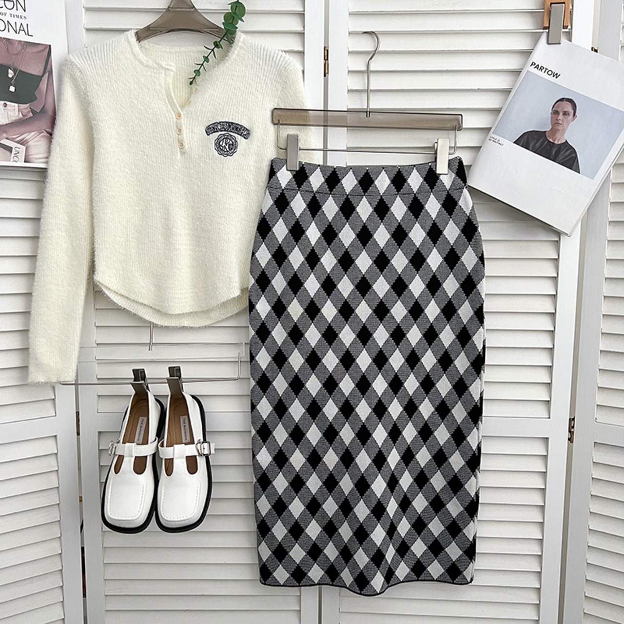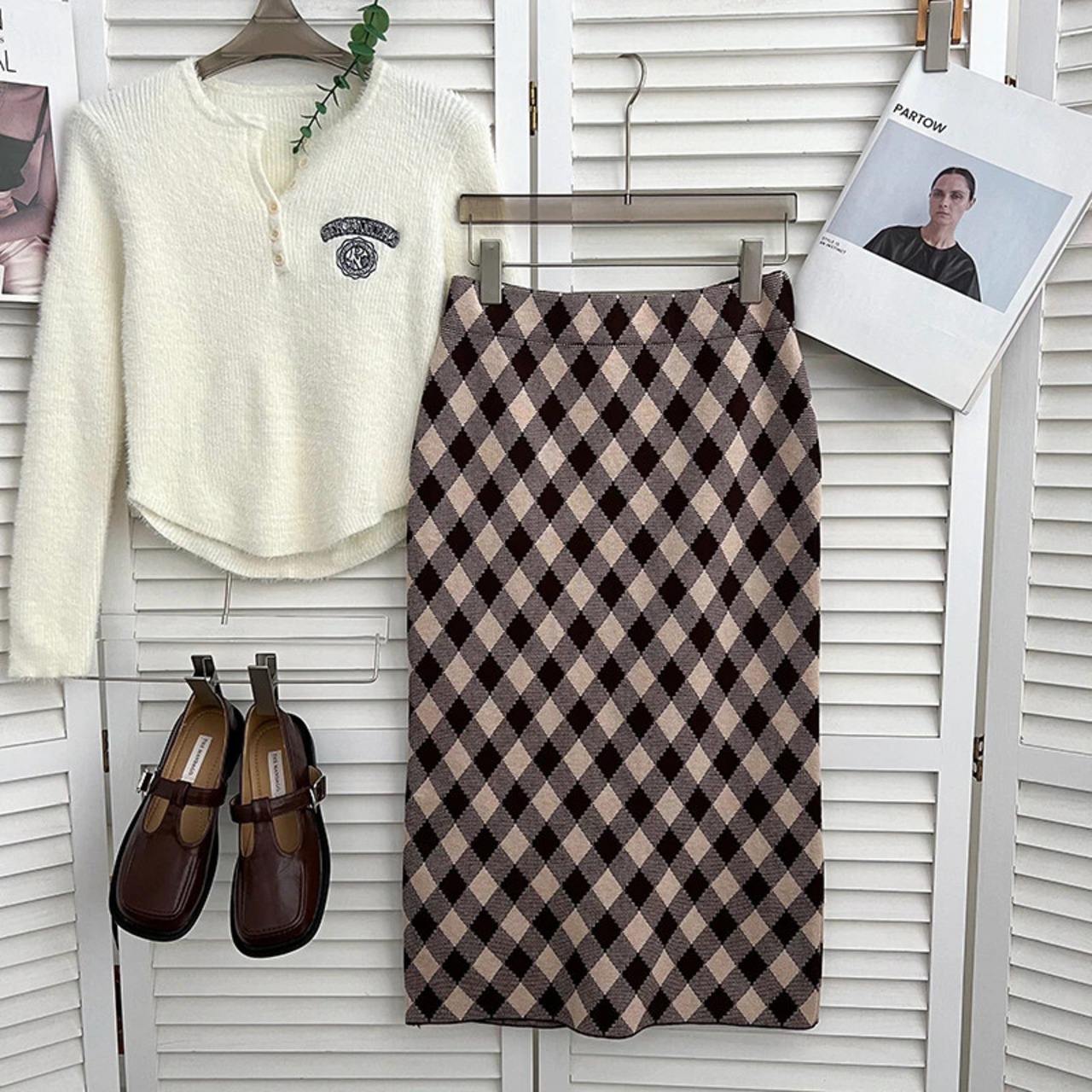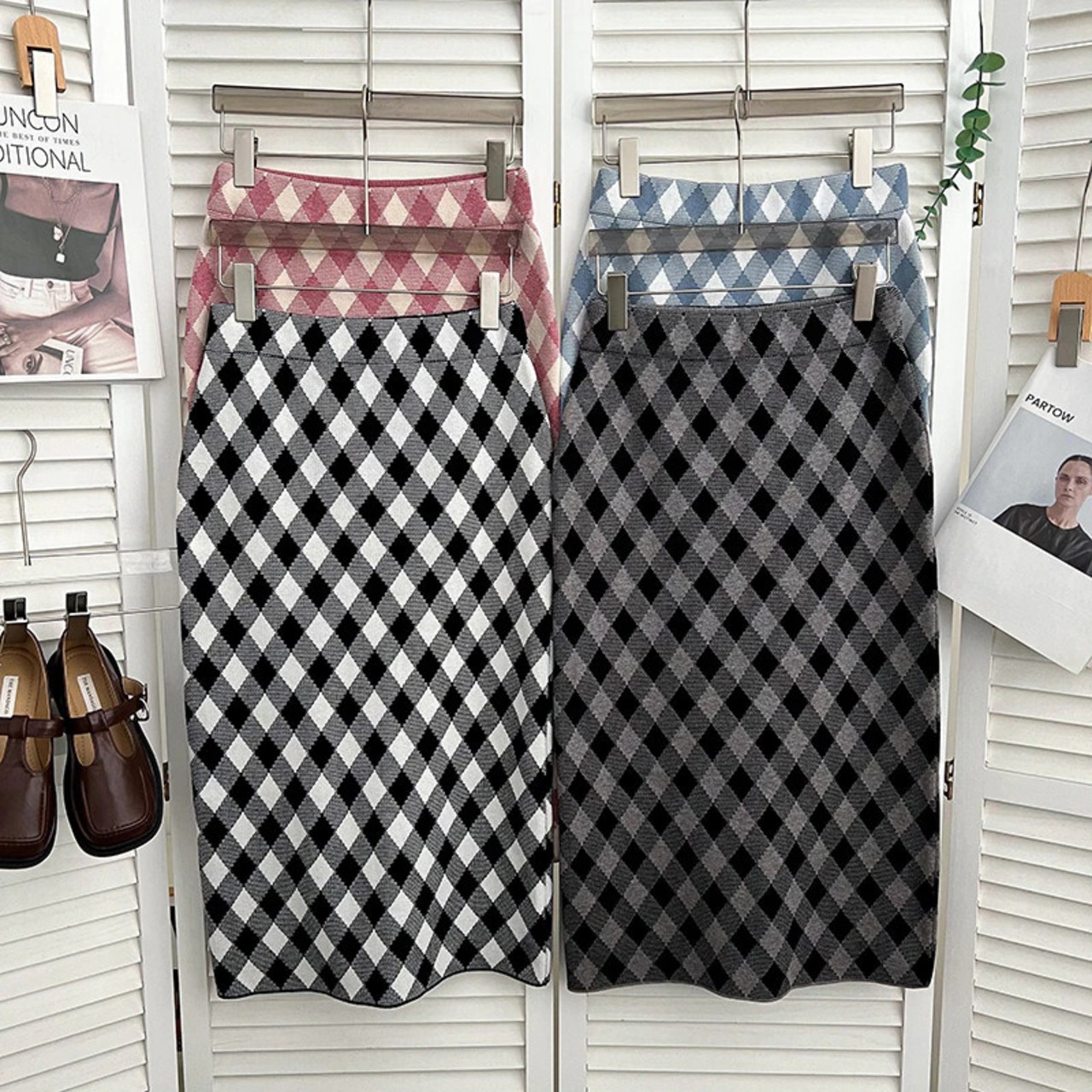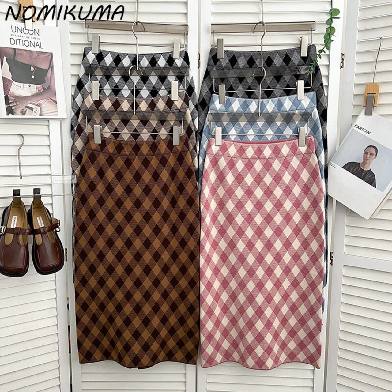 ノミクマ ヒットカラー アーガイル セーター スカート ウエスト 秋冬 ニット スリム ストレッチ スカート オータム 秋物 ウィンター 冬物 kor70742621163