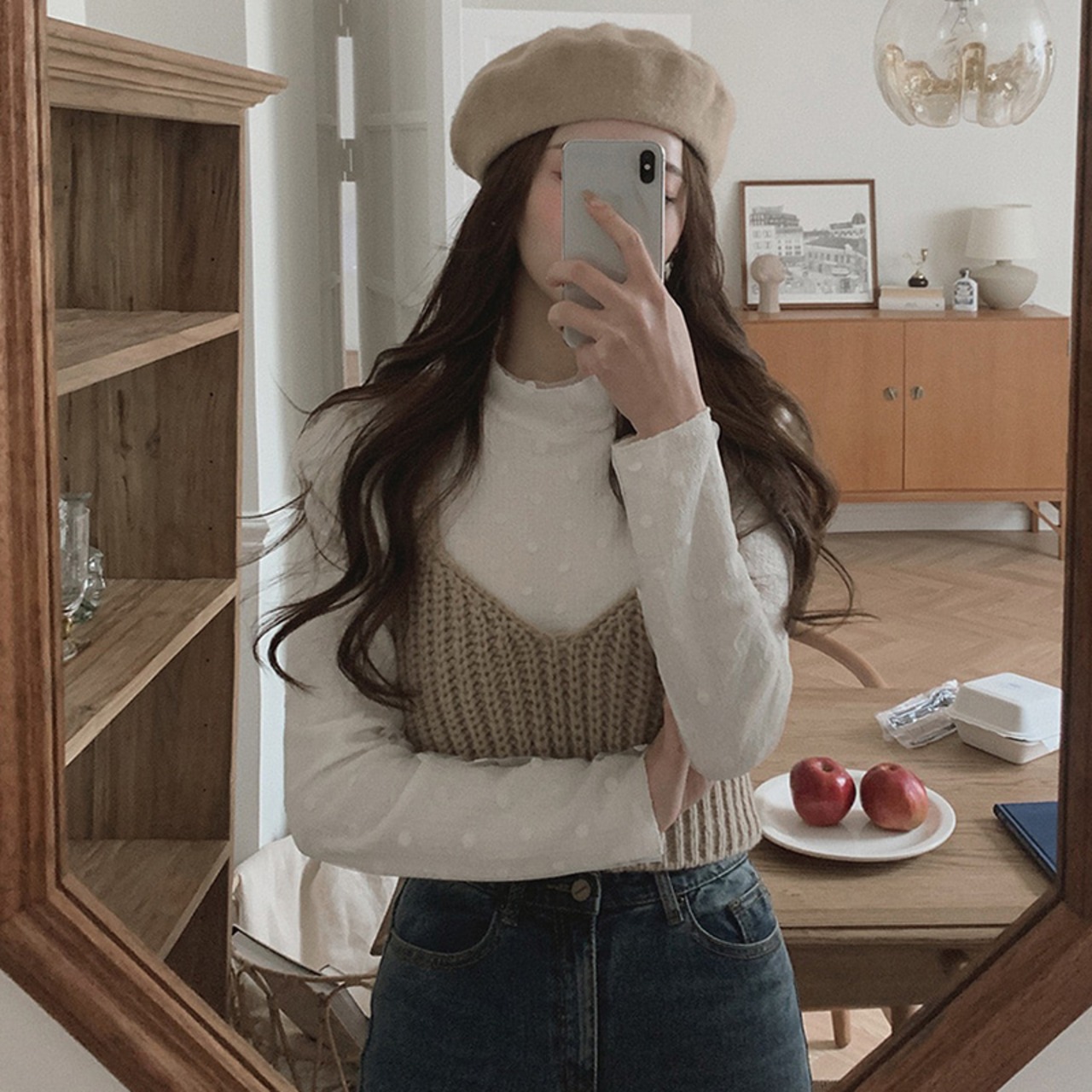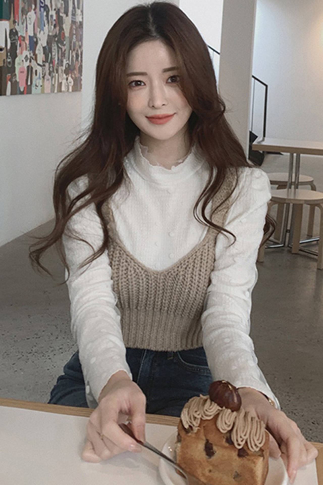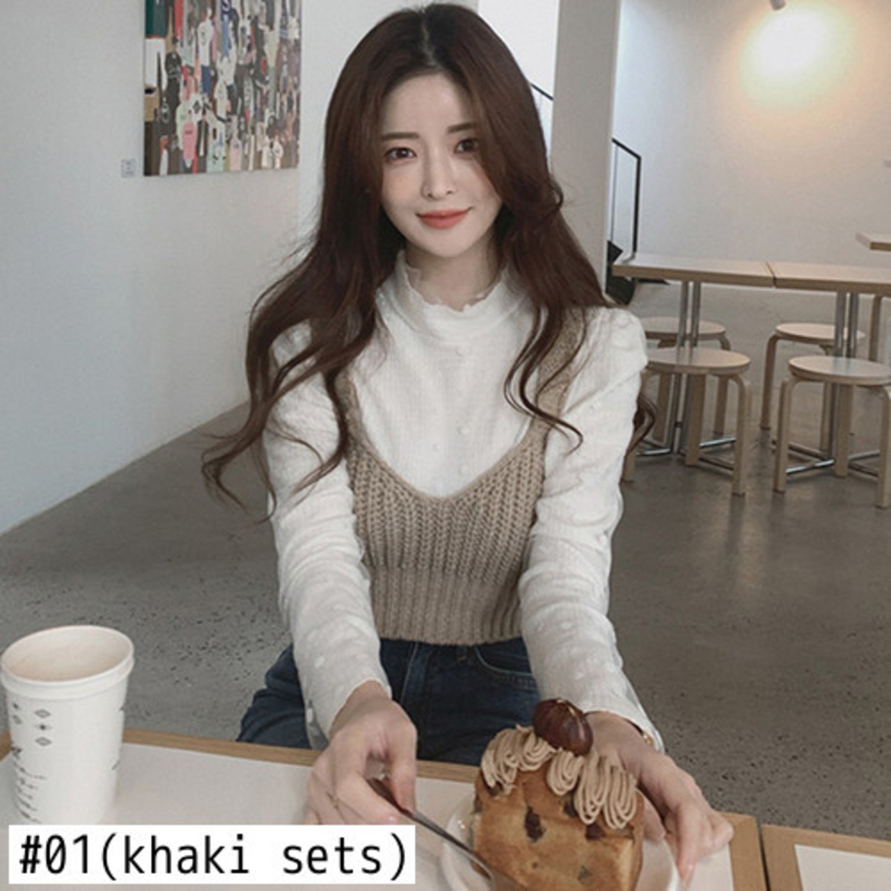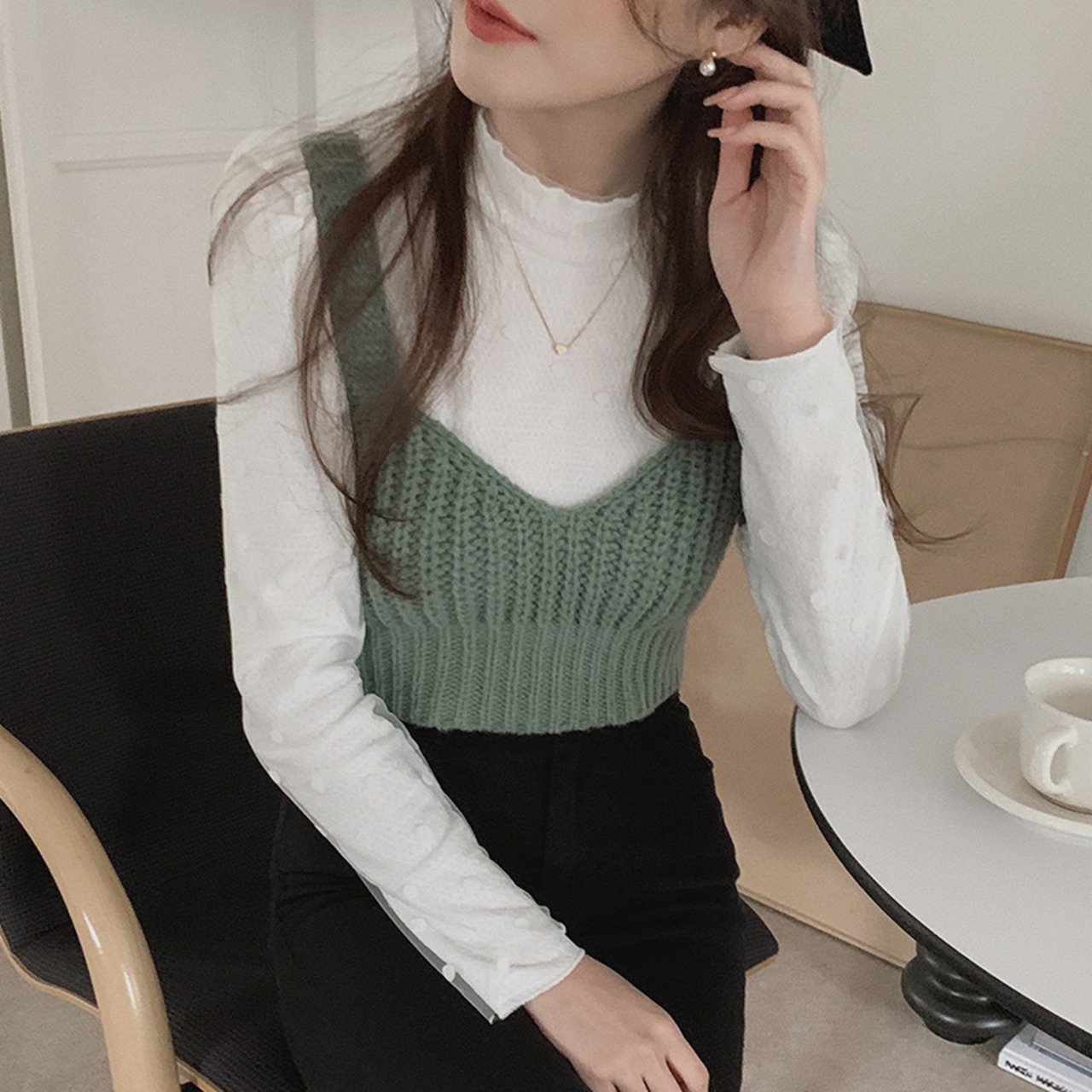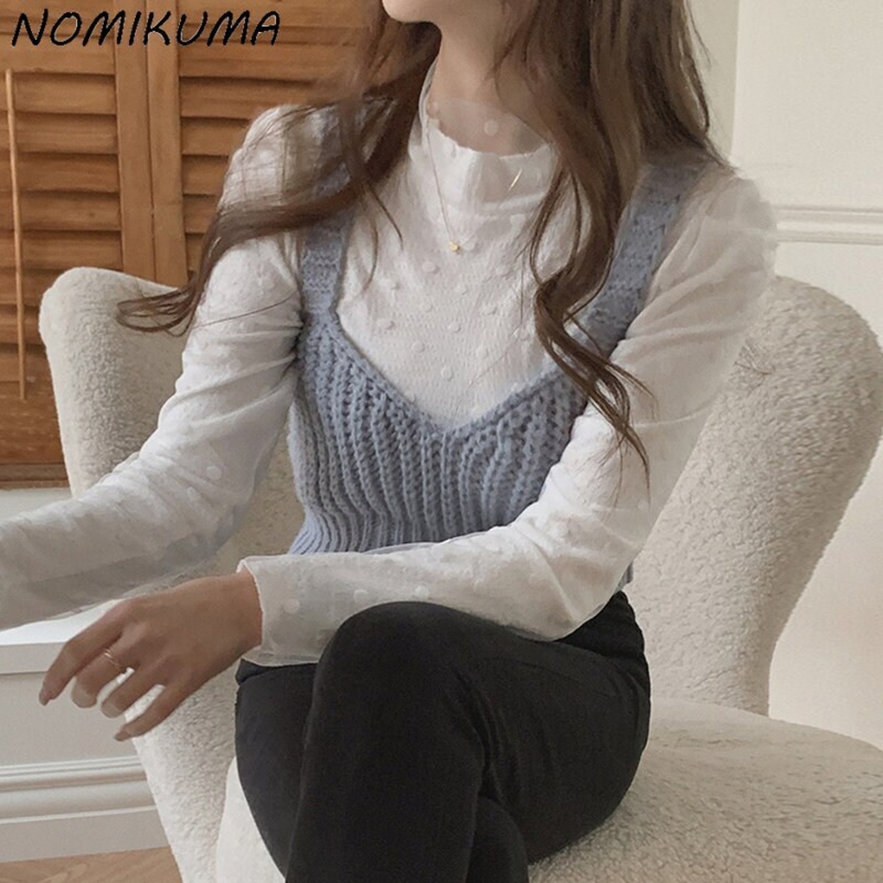 Nomikuma シックなハーフカラー スリム ロングスリーブ ロングスリーブ Tシャツ + ニット スリング ベスト 2 ピース レディース トップス セット 長袖 kor74863902375