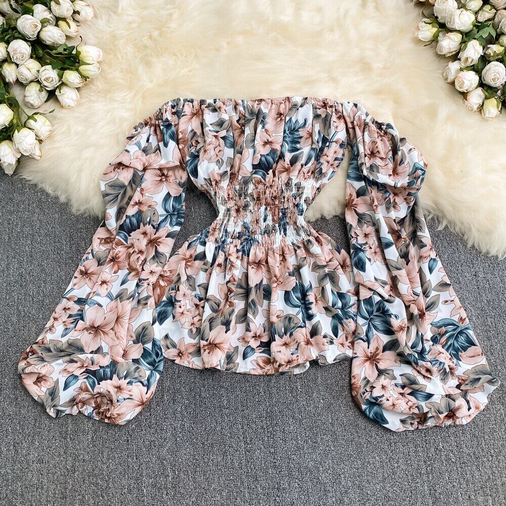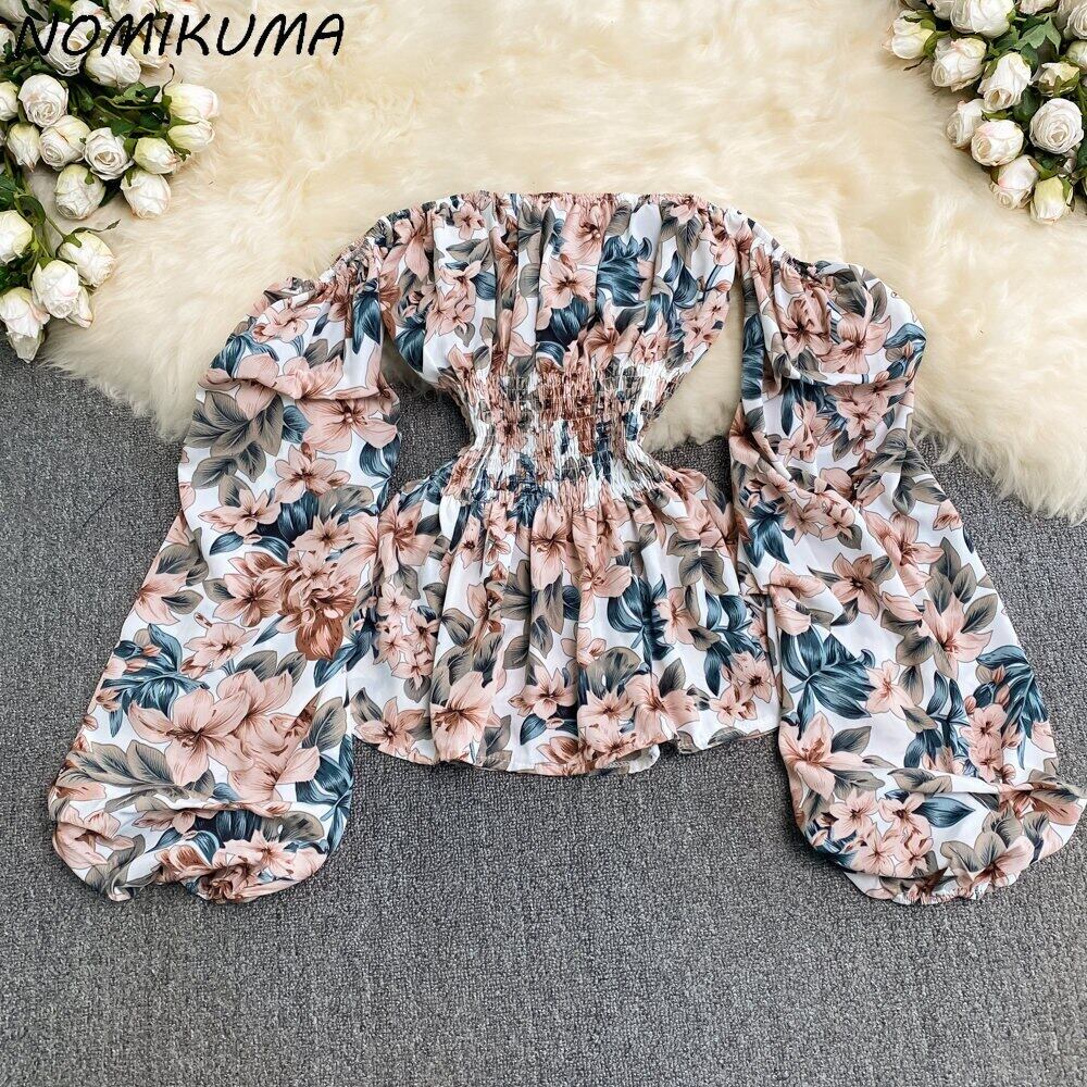 Nomikuma 春秋オフショルダーストラップレスブラウストップスパフスリーブスリムウエストショート女性シャツ スプリング 春物 オータム 秋物 kor19319248083