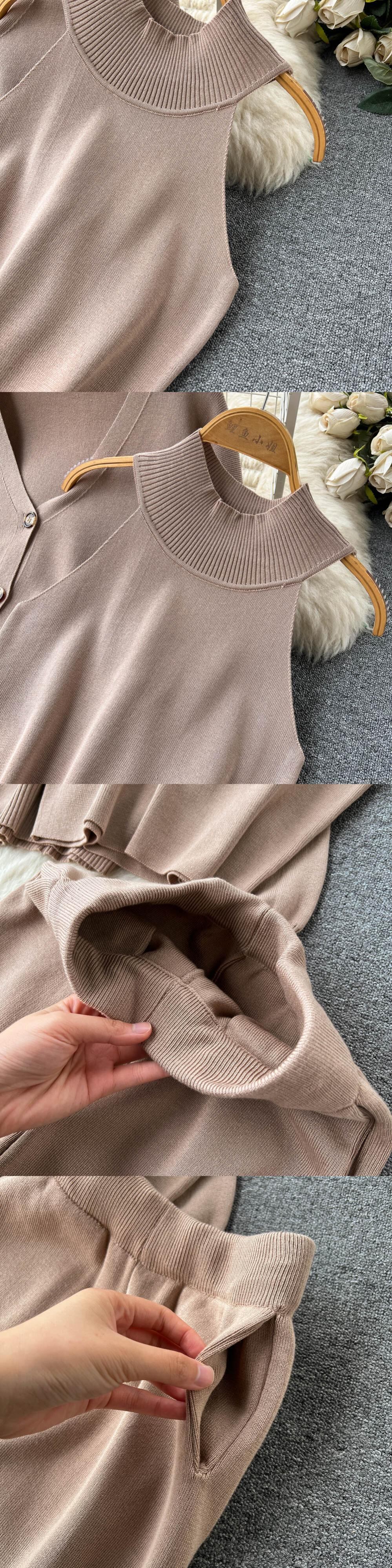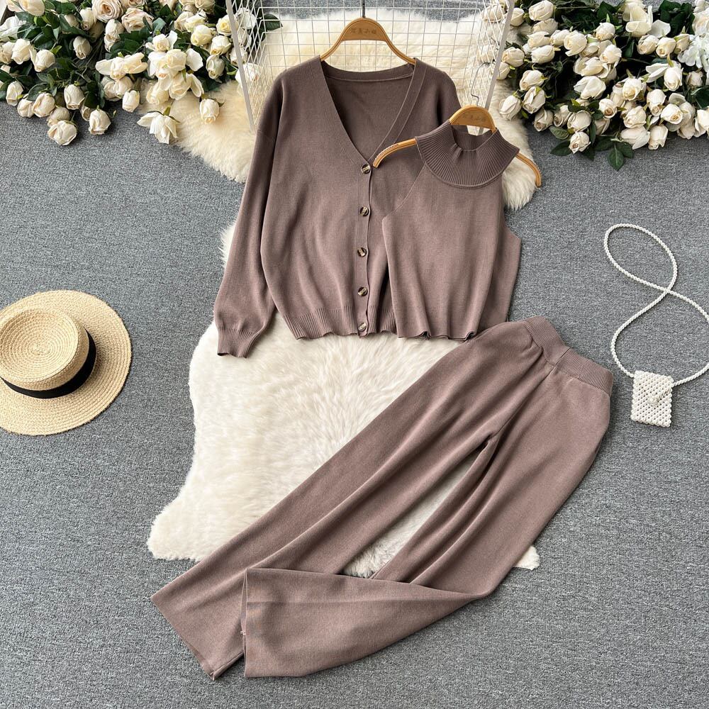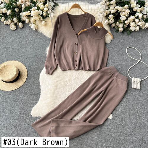 Nomikuma 秋冬セット女性 V ネックシングルブレストカーディガンコート + ノースリーブショートベスト + ウエストロングパンツ オータム 秋物 ウィンター 冬物 Vネック kor5574468849