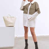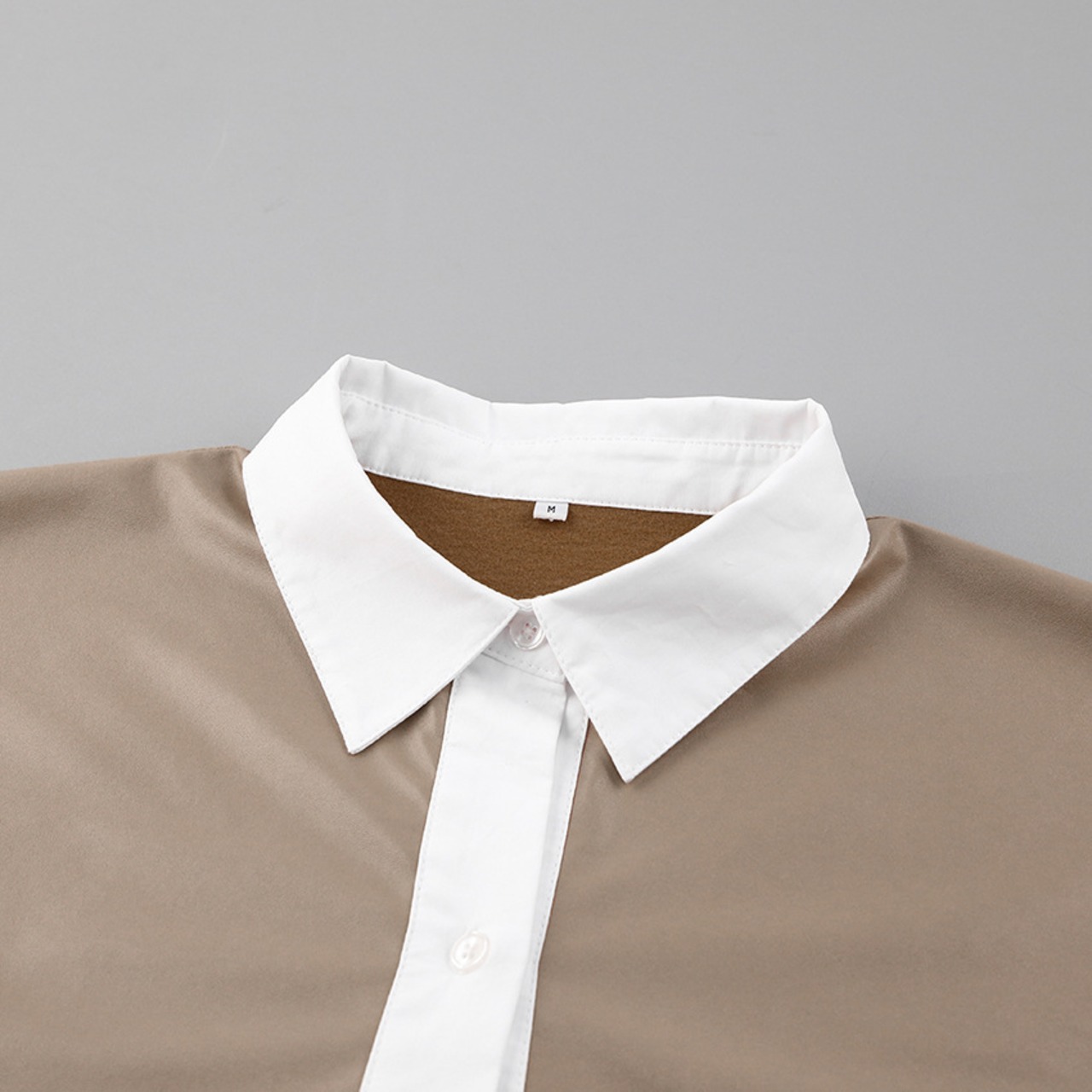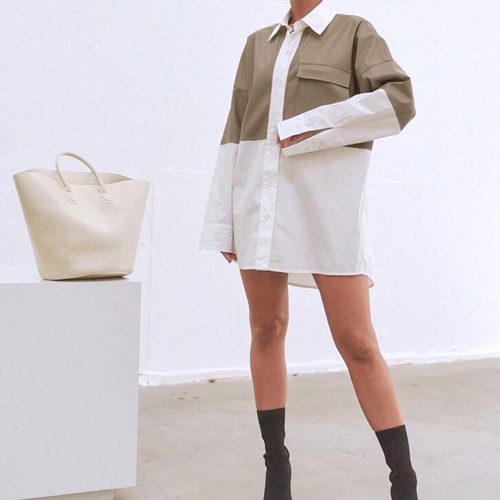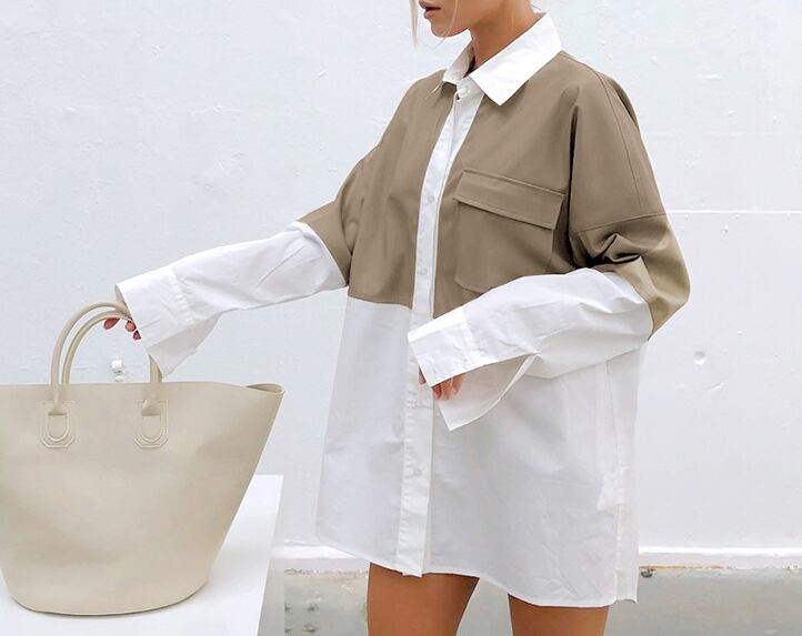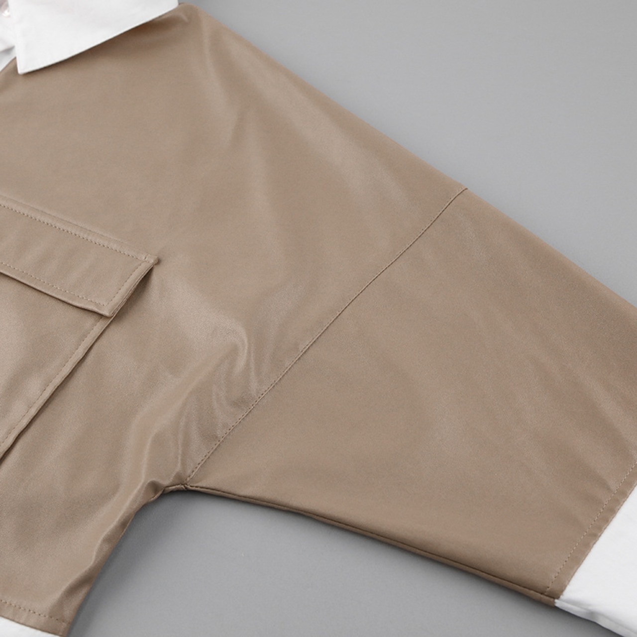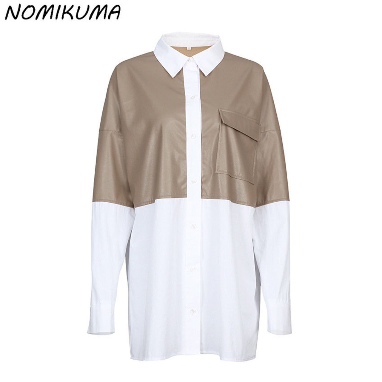 Nomikuma 秋冬 PU レザーパッチワーク因果ミディアムロングブラウストップス女性 2022 長袖シャツ オータム 秋物 ウィンター 冬物 kor33560507848