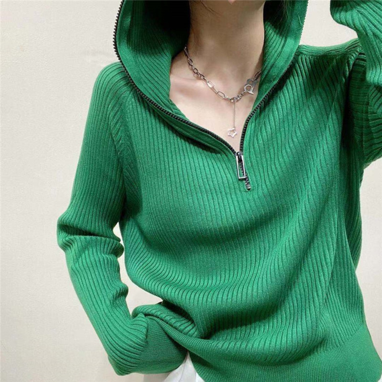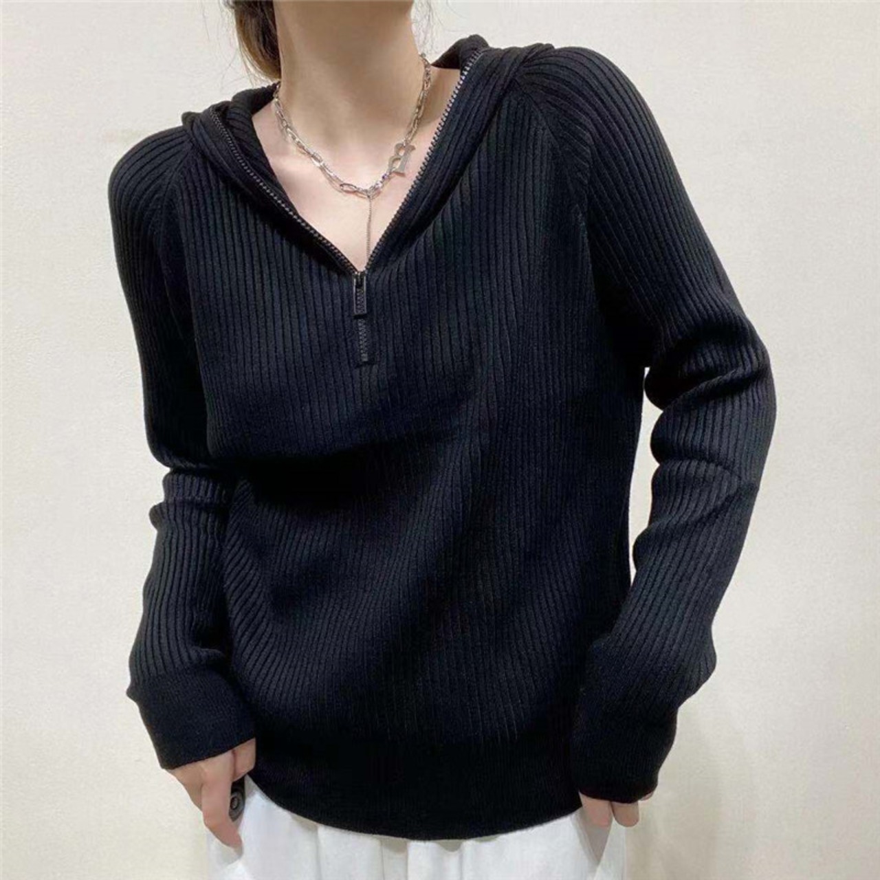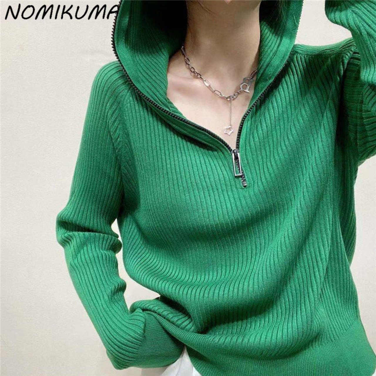 Nomikuma 秋冬無地フード付きニットトップス長袖女性セーター因果プルオーバーニット取手 ロング オータム 秋物 ウィンター 冬物 ソリッドカラー kor62755968971