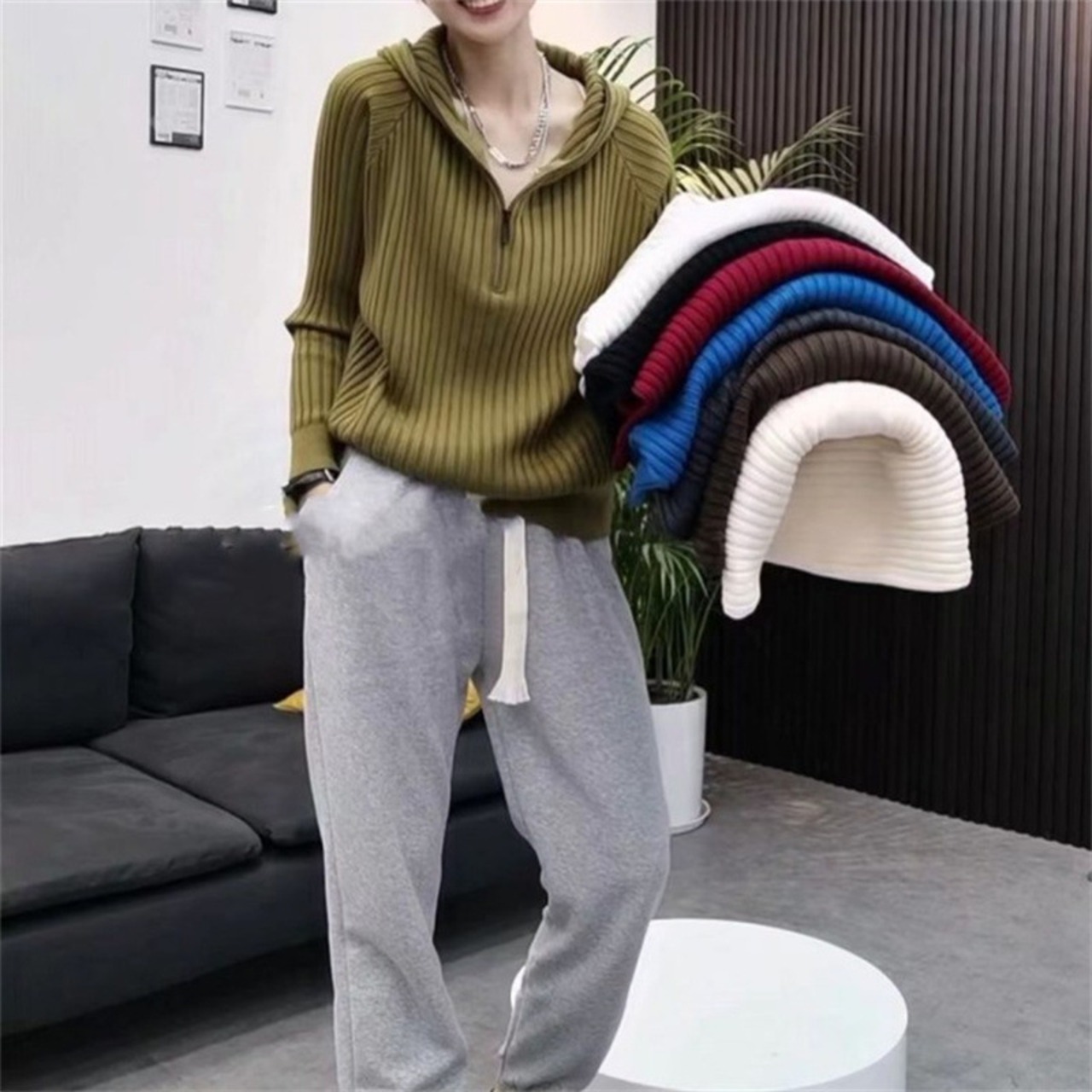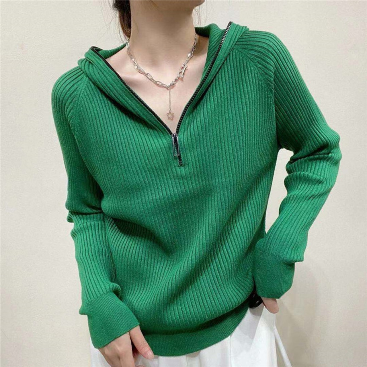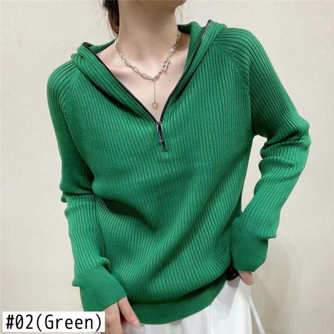Nomikuma 秋冬無地フード付きニットトップス長袖女性セーター因果プルオーバーニット取手 ロング オータム 秋物 ウィンター 冬物 ソリッドカラー kor62755968971