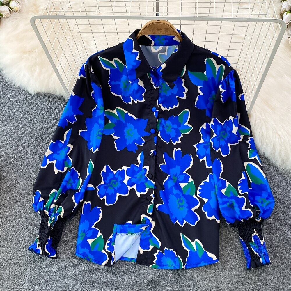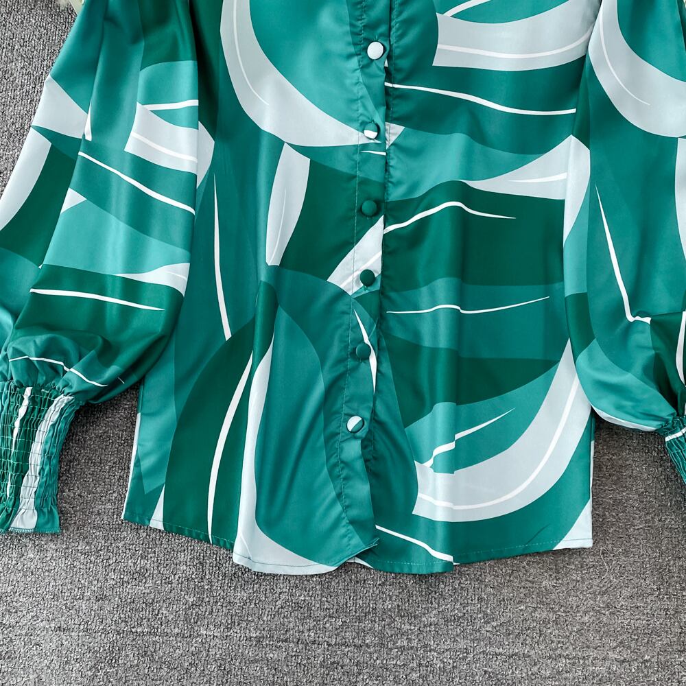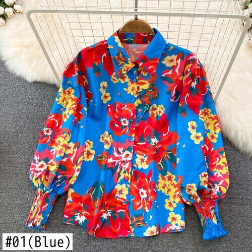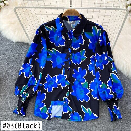 Nomikuma 2023 春秋の印刷女性ブラウスランタンスリーブターンダウン襟トップシャツ因果 スプリング 春物 オータム 秋物 kor45582105330