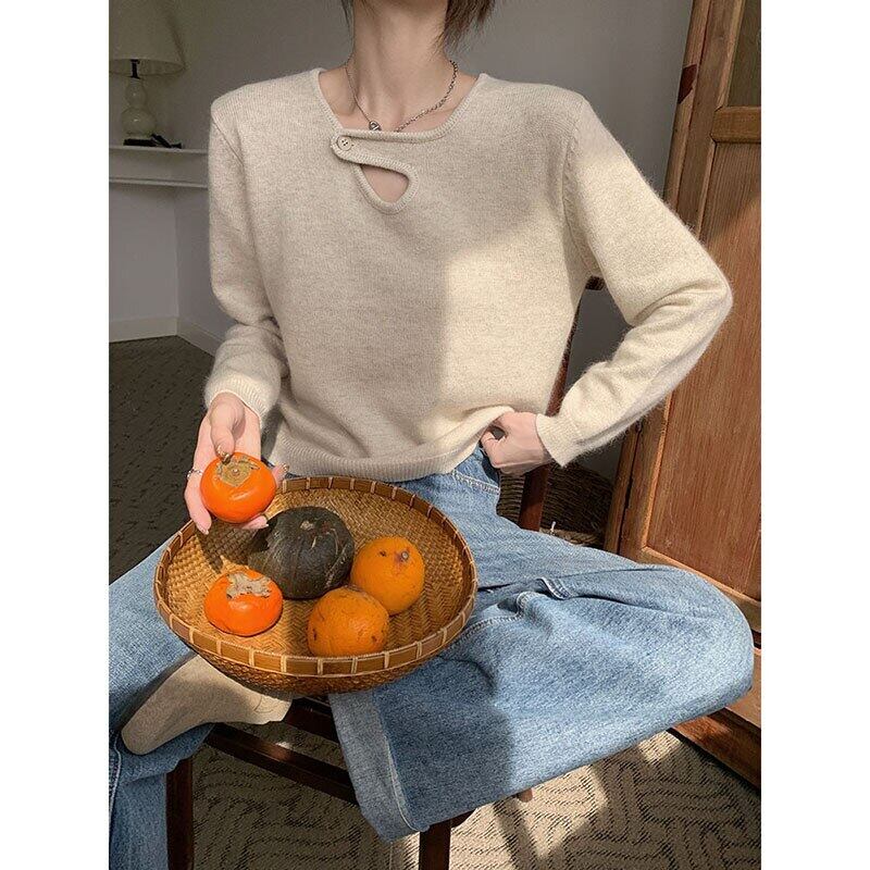 ノミクマ Oネック くり抜きニットセーター 長袖 カジュアル無地ニット 秋冬 プルオーバー ニットトップス ロング オータム 秋物 ウィンター 冬物 ソリッドカラー kor73636236265