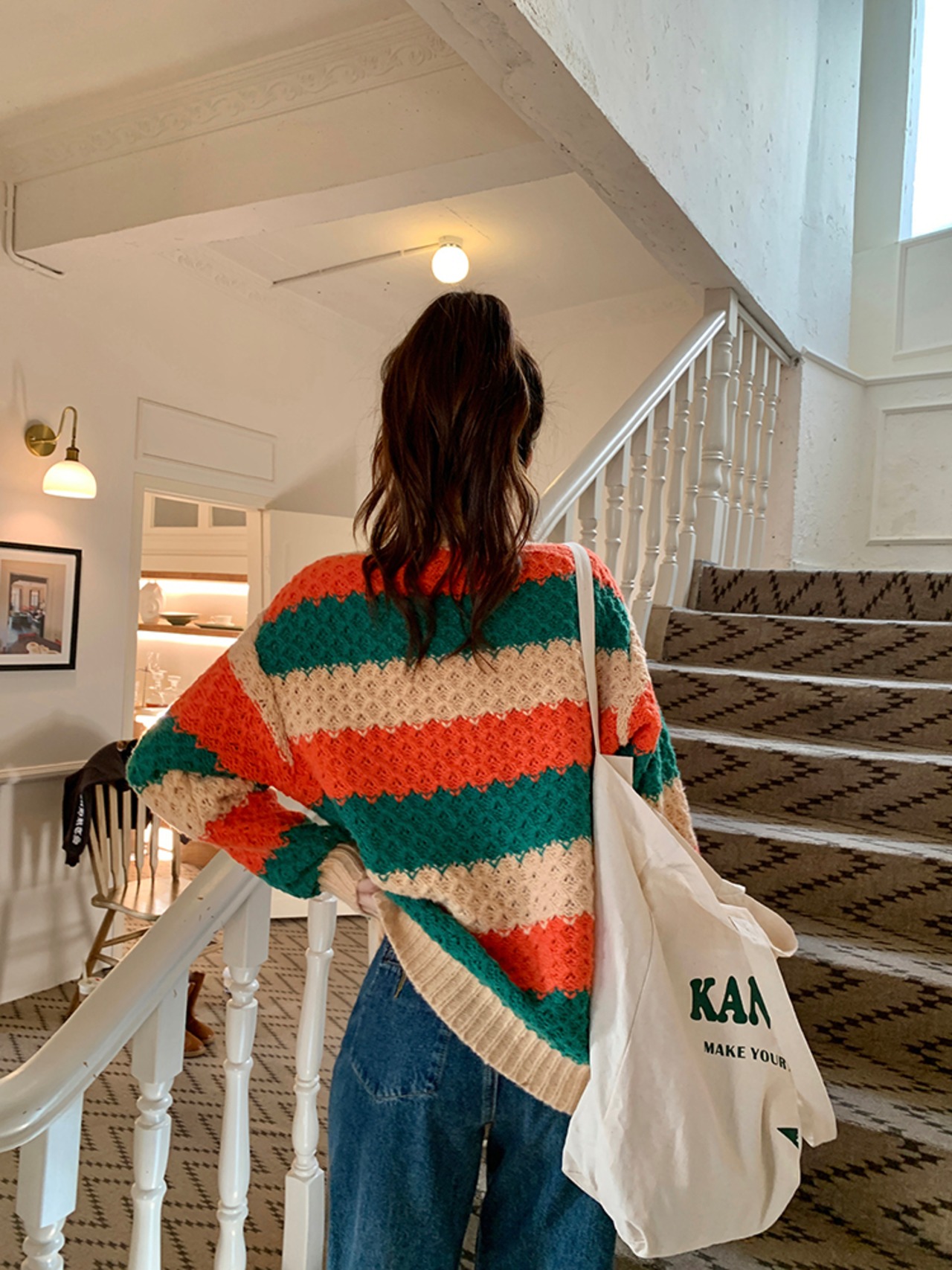 Nomikuma レインボーストライプ長袖セーター女性秋冬 2022 プルローズフラワー因果プルオーバーニット ロング オータム 秋物 ウィンター 冬物 フラワーデザイン kor72988799273