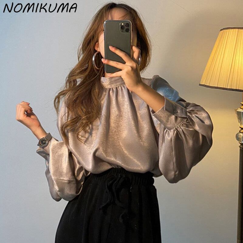 ノミクマ スタンドカラー 因果ラターンスリーブ シャツ 春秋 レディース トップス 因果ブラウス スプリング 春物 オータム 秋物 kor63513351538