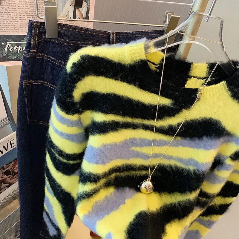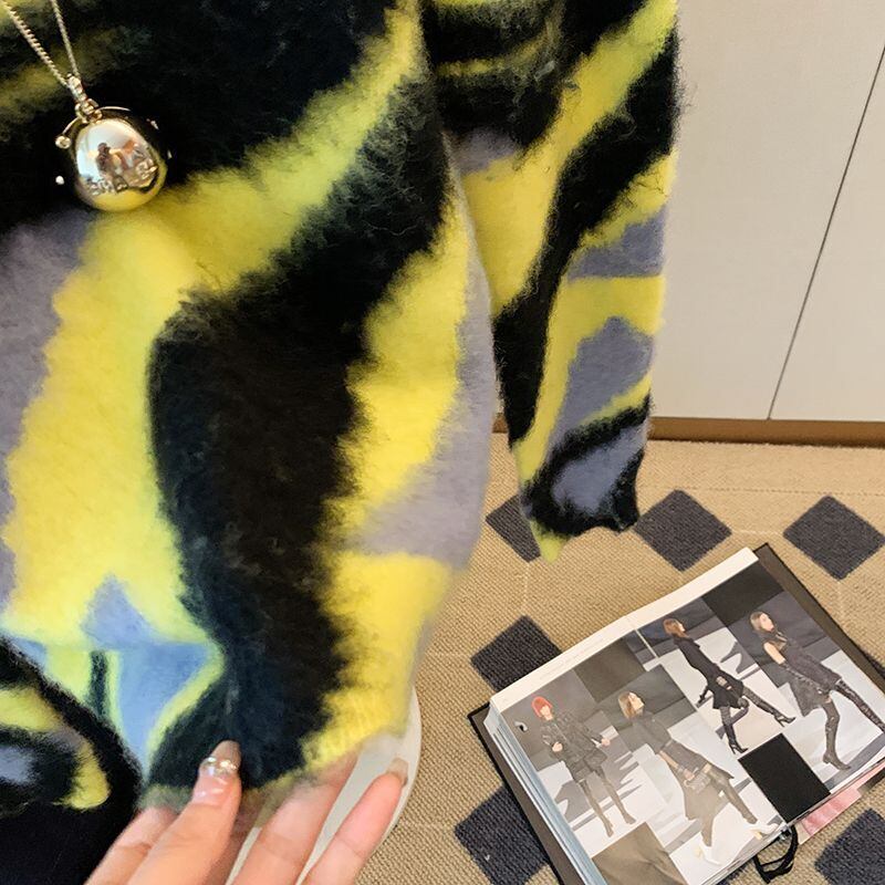 Nomikuma ヒットカラー絞り染めプルオーバーセーター長袖 O ネックニット秋冬女性ニットトップス ロング オータム 秋物 ウィンター 冬物 Oネック kor16759574485