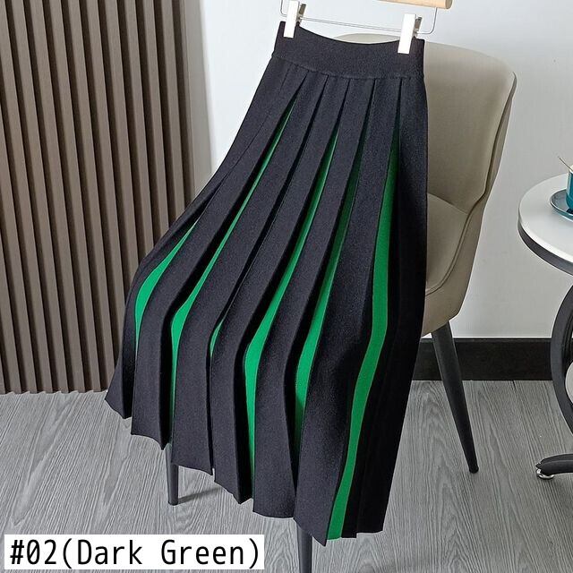 ノミクマ 秋冬 ニット コントラストカラー スカート ウエスト カジュアル Aライン セーター プリーツスカート ファルダス オータム 秋物 ウィンター 冬物 kor75555080997